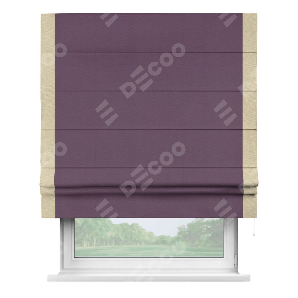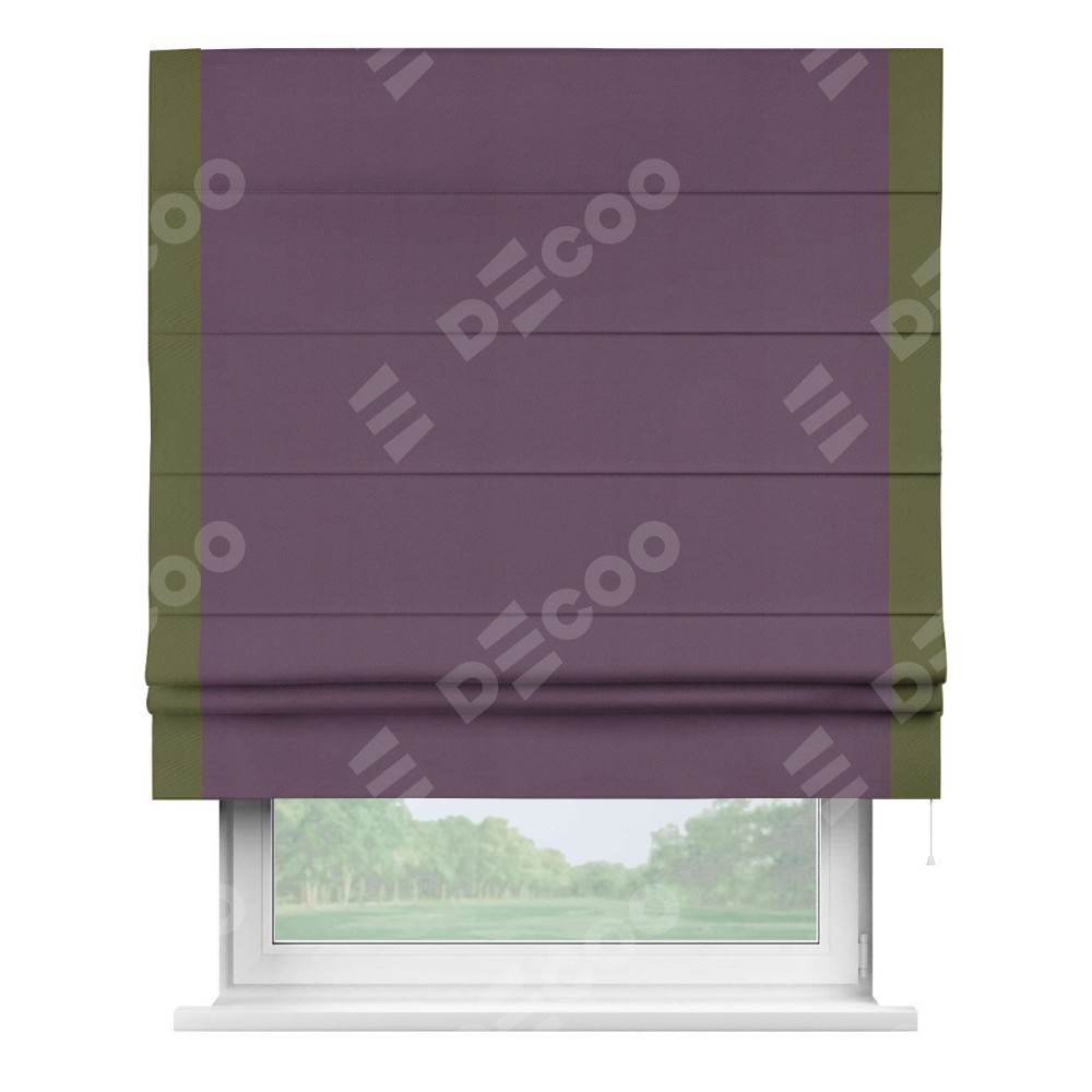 Римская штора производителя «Cortin», используется для проёма, пошита из ткани блэкаут однотонный фуксия, артикул ткани 88303. Отделка шторы кантом «Стрим Дуо», ткань для канта используется из блэкаута однотонного разной расцветки на выбор. Имеет универсальный механизм и подходит для монтажа: на потолок, на стену и в нишу.