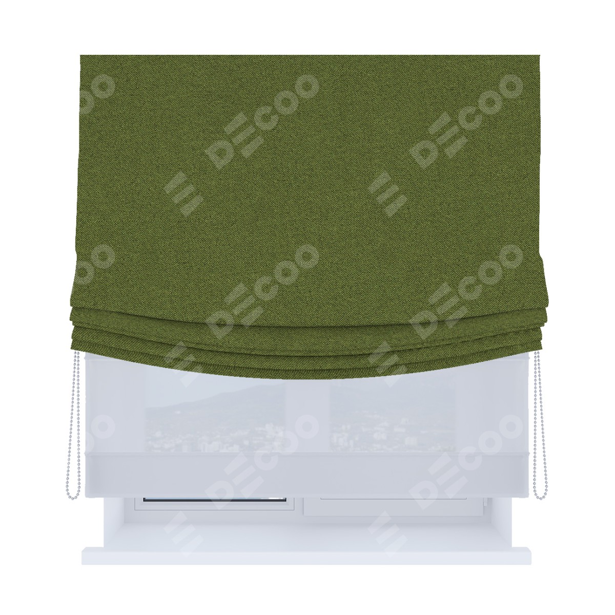 Римская штора день-ночь производителя «Cortin», используется для проёма, пошита из двух полотен, с лицевой стороны лён блэкаут оливковый артикул 69516, вторая ткань тюль (по стандарту комплектуется тюль белого цвета артикул V-01). Имеет универсальный механизм и подходит для монтажа: на потолок, на стену и в нишу. Удобное управление каждой шторой отдельно.