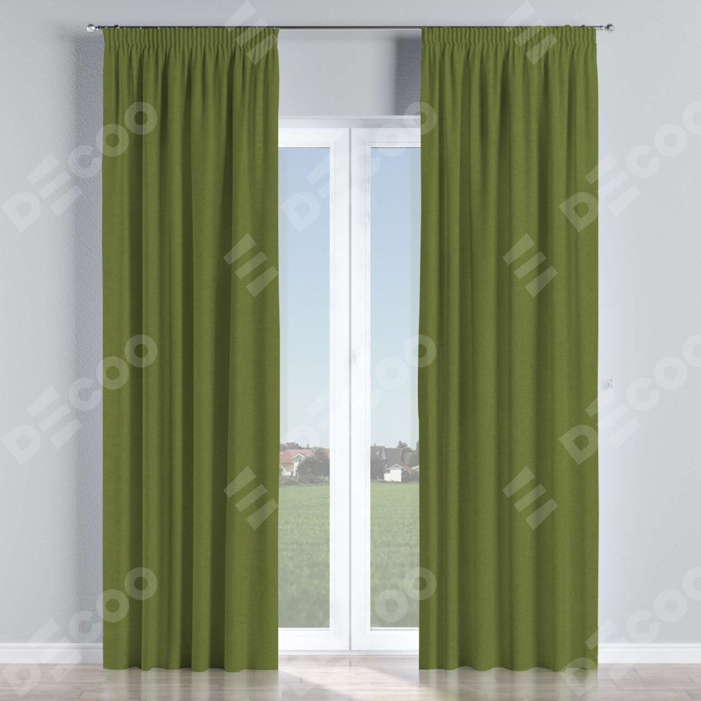 Комплект штор на тесьме «Карандаш», лён блэкаут оливковый