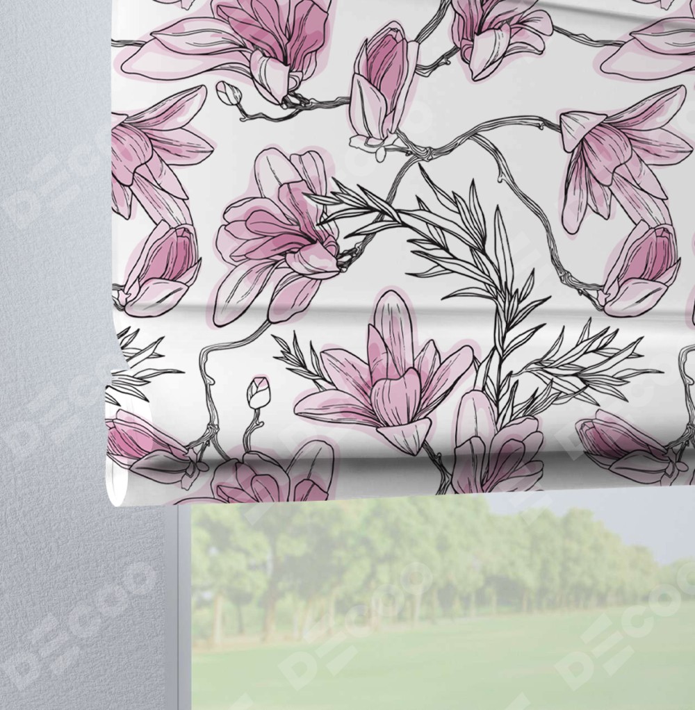 Римская штора «Кортин» на петлях «Цветки магнолии»