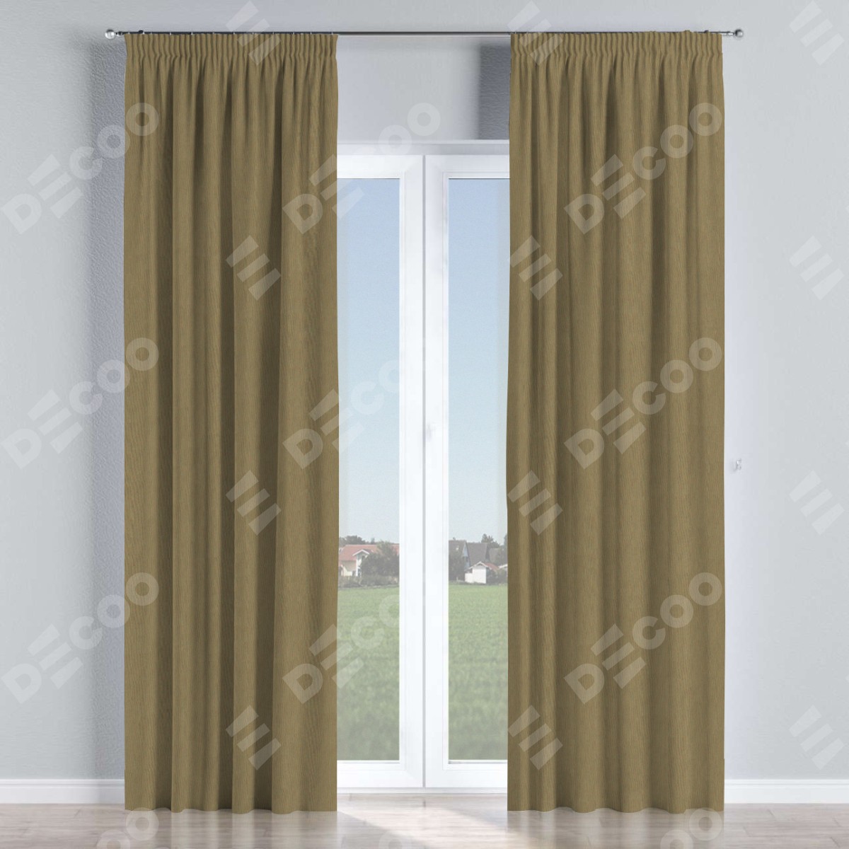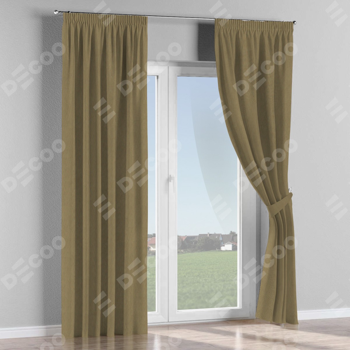 Комплект прямых штор, от производителя «Cortin», пошиты из ткани блэкаут однотонный бежево-золотой, артикул ткани 12095−2. С изнаночной стороны в верхней части штор пристрачивается шторная лента с декоративными складками «Карандаш». Для создания элегантных складок прямые шторы шьются по стандарту с коэффициентом 1:2 (на 100 см. ширины проёма 200 см. ширины ткани).