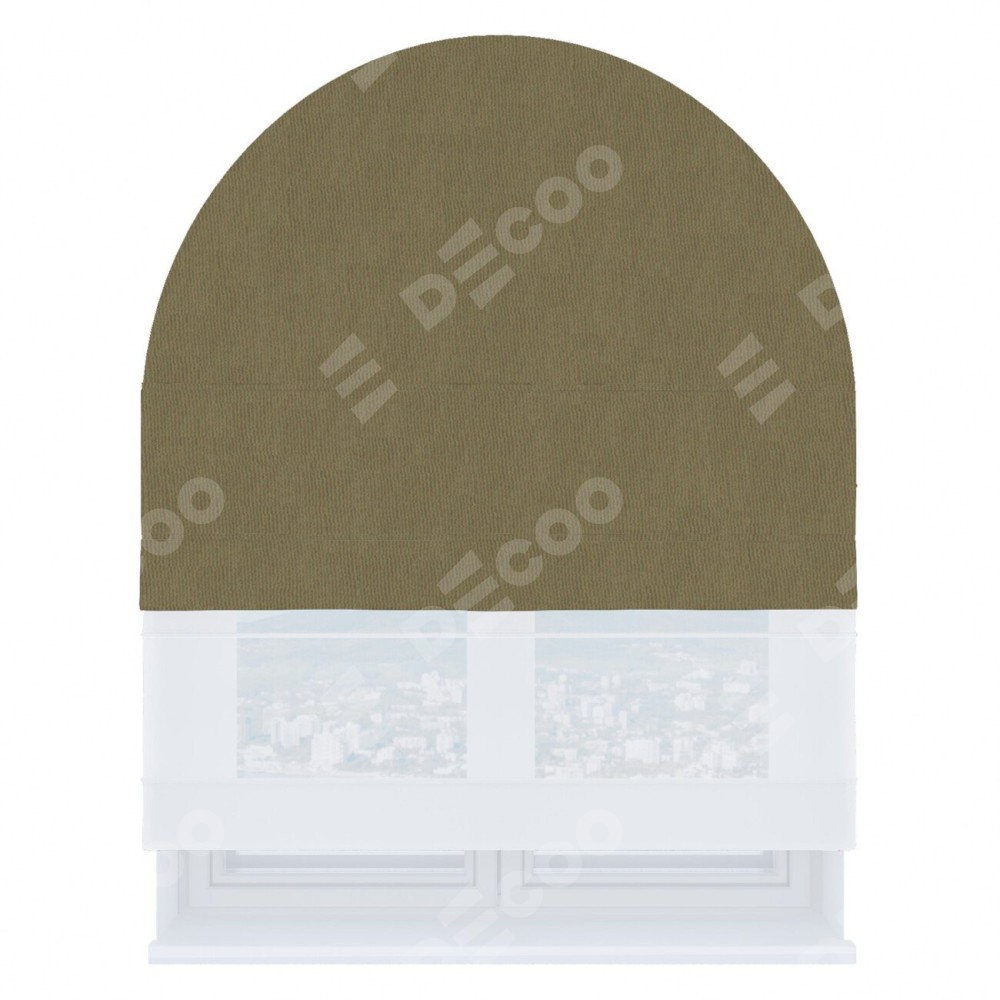 Римская штора день-ночь производителя «Cortin», используется для арочного проёма, пошита из двух полотен, с лицевой стороны блэкаут однотонный бежево-золотой артикул 12095−2, вторая ткань тюль (по стандарту комплектуется тюль белого цвета артикул V-01). Штора шьётся по индивидуальным размерам, для данного типа римской шторы возможная ширина от 60 до 300 см. Удобное управление каждой шторой отдельно.