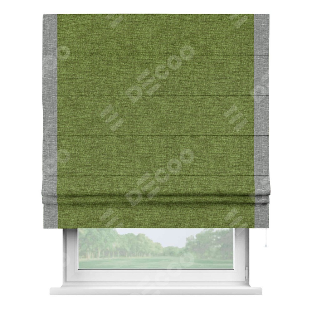 Римская штора «Кортин» с кантом Стрим Дуо, для проема, ткань рогожка димаут, салатовый