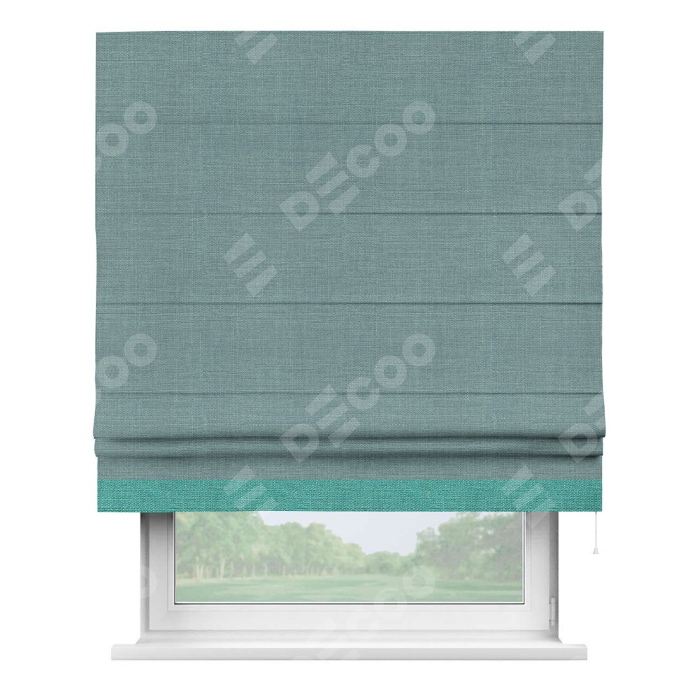Римская штора «Кортин» с отделкой кантом Джестер, для проема, лён голубой