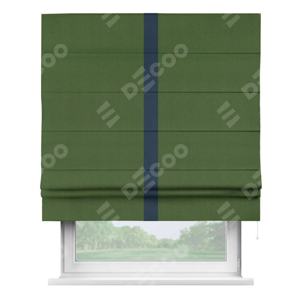 Римская штора «Кортин» с кантом Хайвэй, для проема, ткань блэкаут однотонный зелёный перламутр