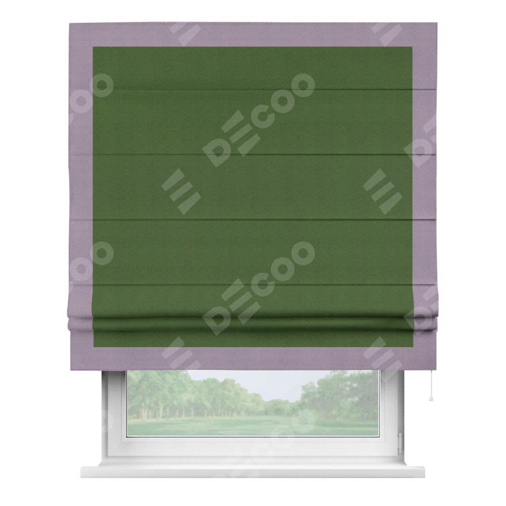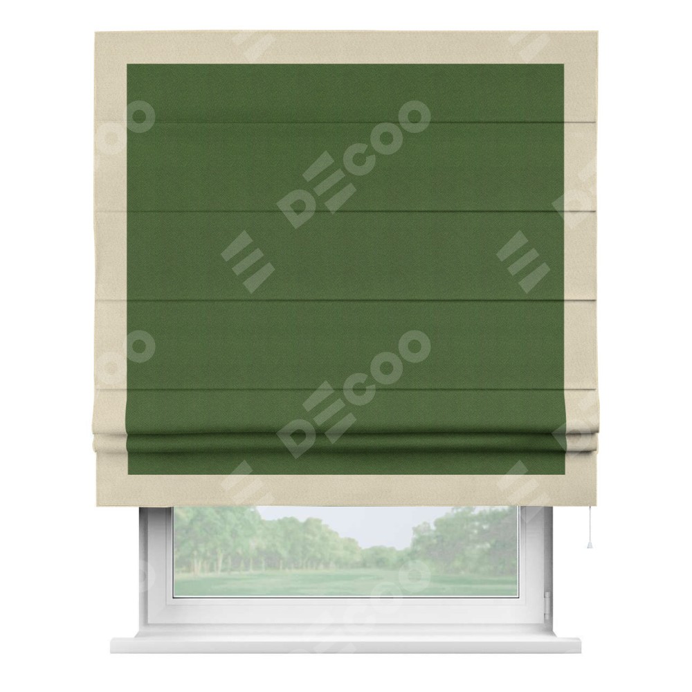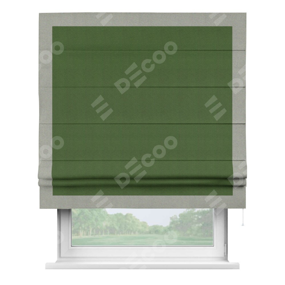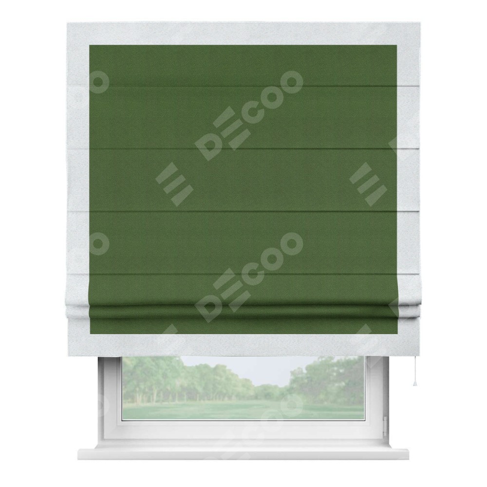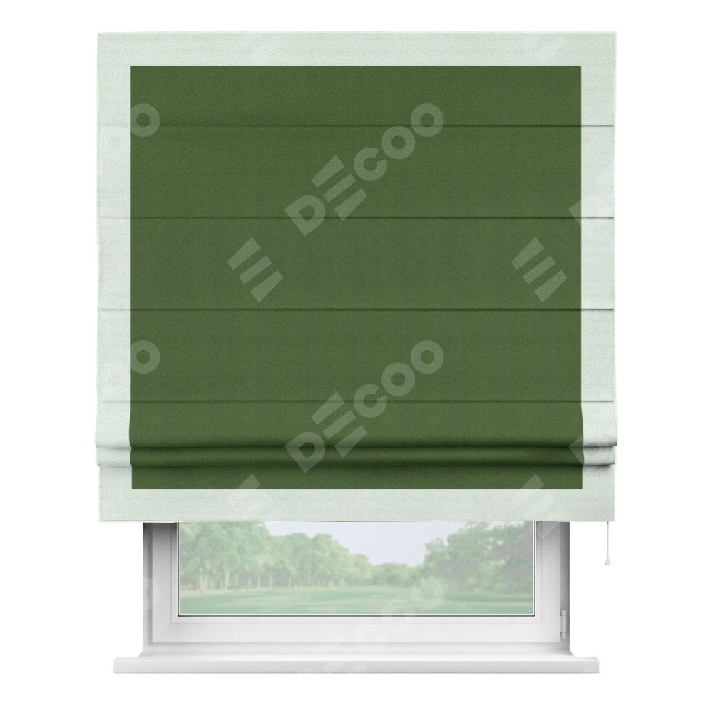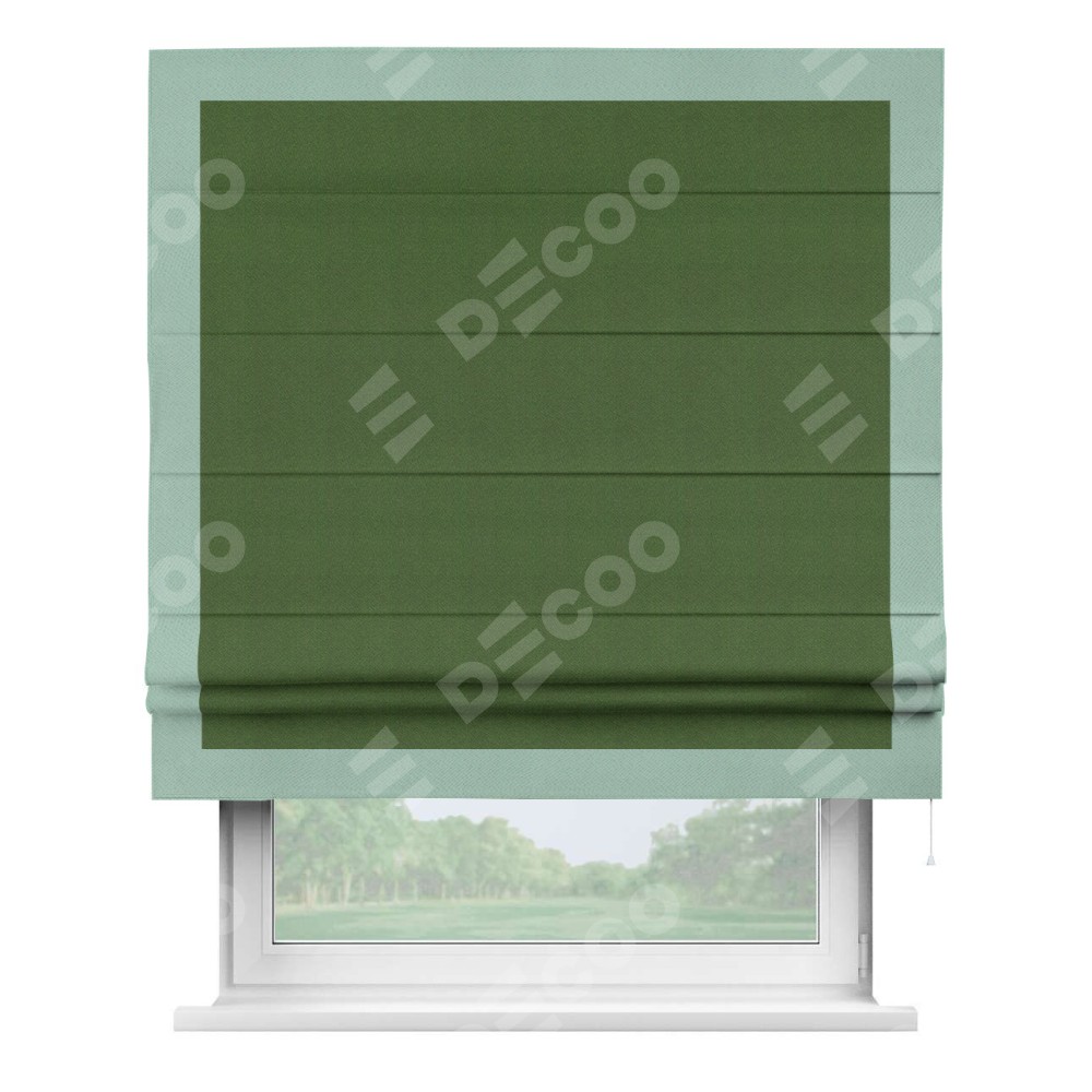 Римская штора «Кортин» с кантом Чесс, для проема, ткань блэкаут однотонный зелёный перламутр
