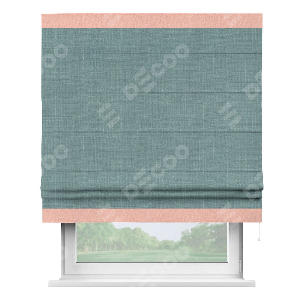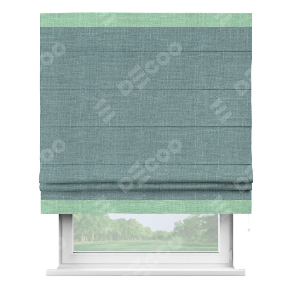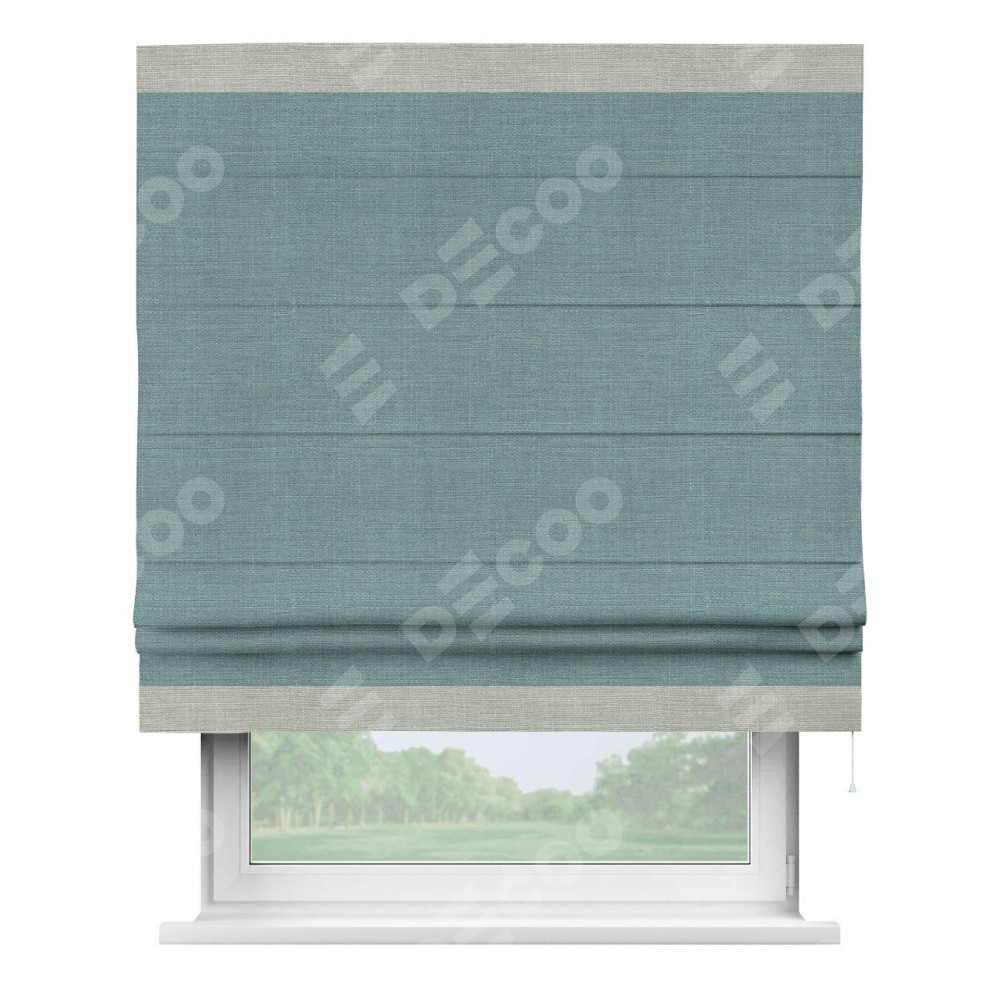 Римская штора «Кортин» с отделкой кантом Горизонт, для проема, лён, цвет голубой
