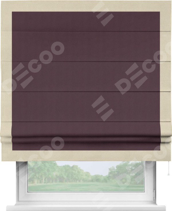 Римская штора «Кортин» с кантом Чесс, для проема, ткань блэкаут однотонный цвет сиреневый