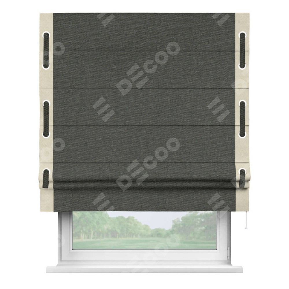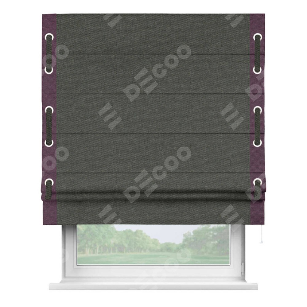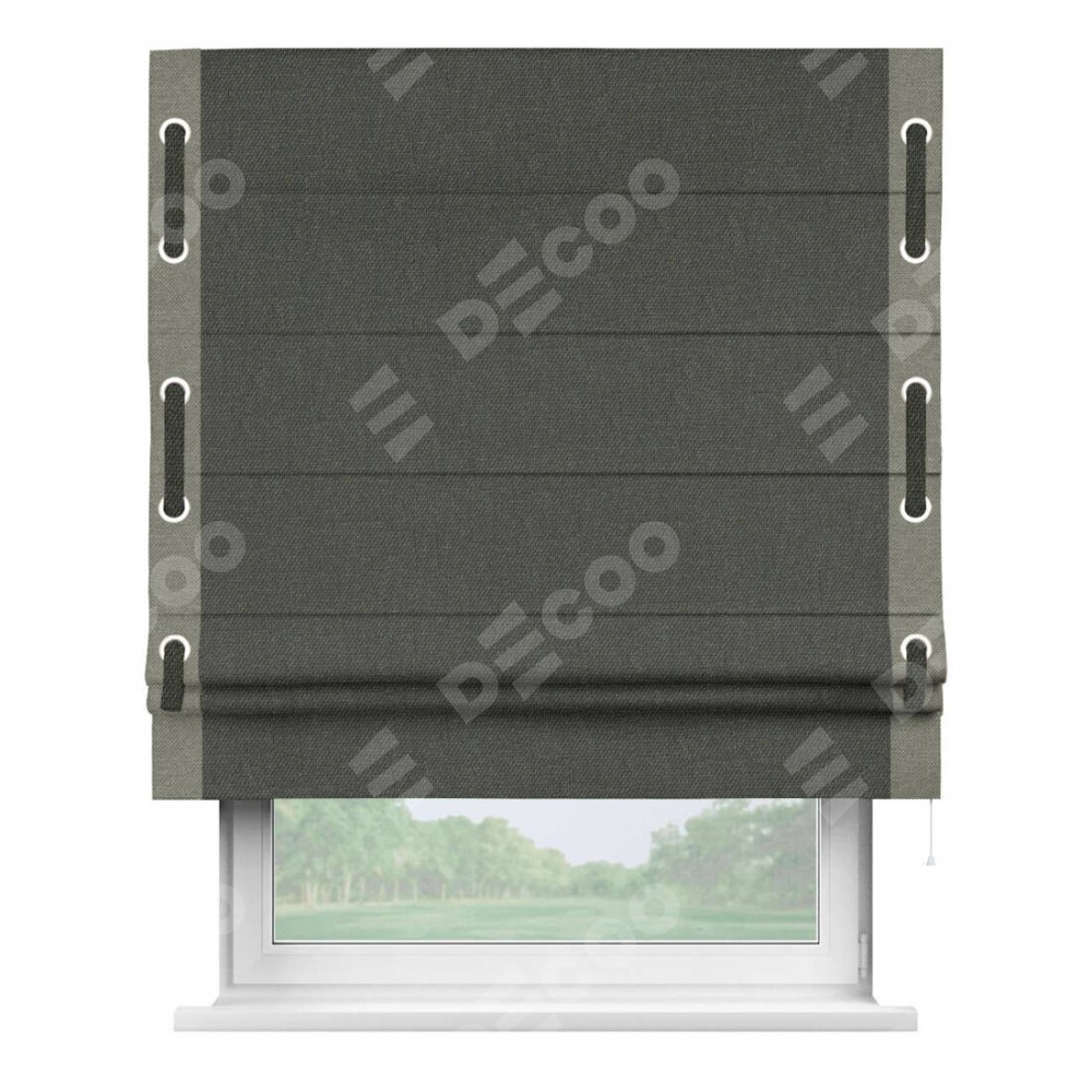 Римская штора «Кортин» с кантом Стрим Дуо (люверсы с пояском), для проема, ткань лён димаут, графитово-серый