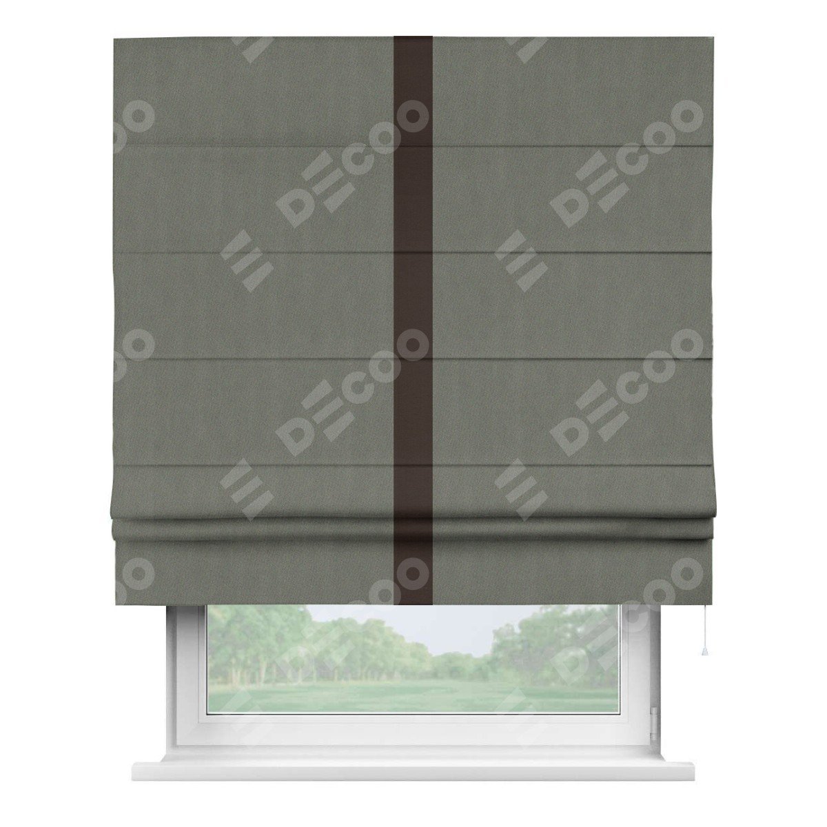 Римская штора «Кортин» с кантом Хайвэй, для проема, ткань блэкаут однотонный тёмно-серый