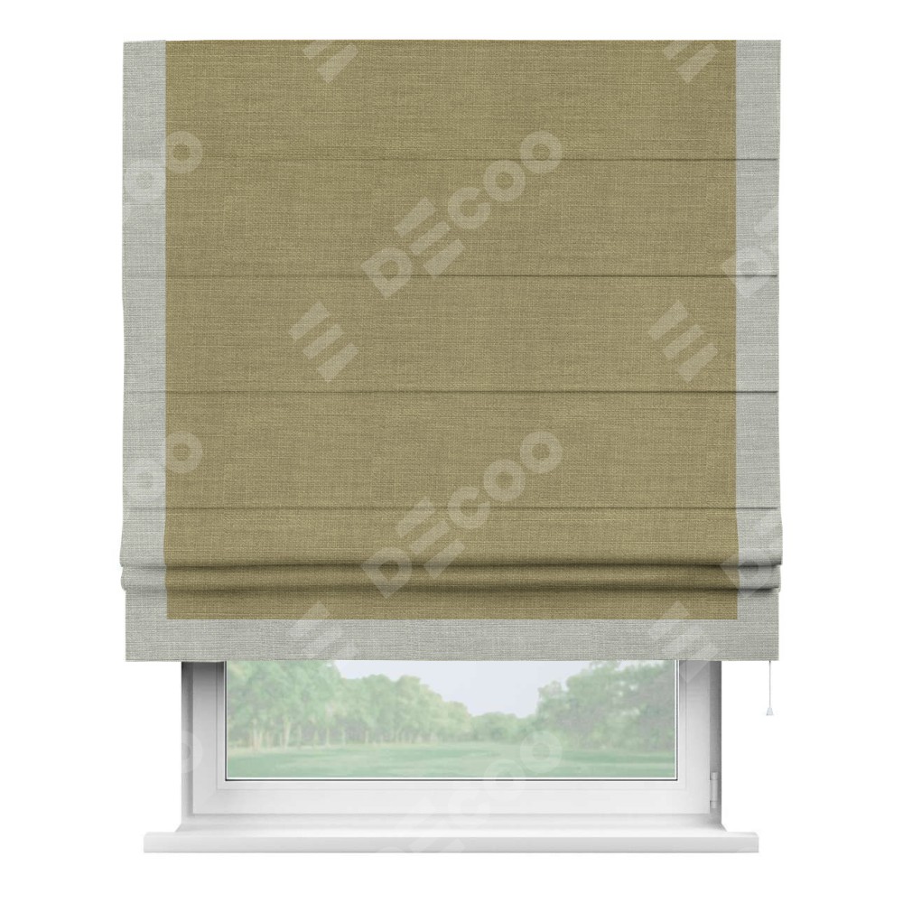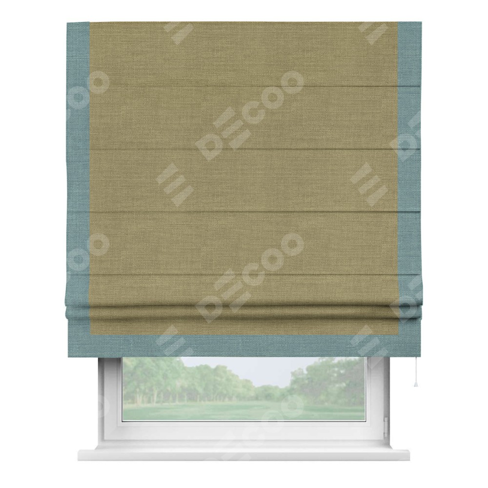 Римская штора производителя «Cortin», используется для проёма, пошита из ткани лён коричневый, артикул 7443. Отделка шторы кантом «Виктория», ткань для канта используется из льна разной расцветки на выбор. Имеет универсальный механизм и подходит для монтажа: на потолок, на стену и в нишу.