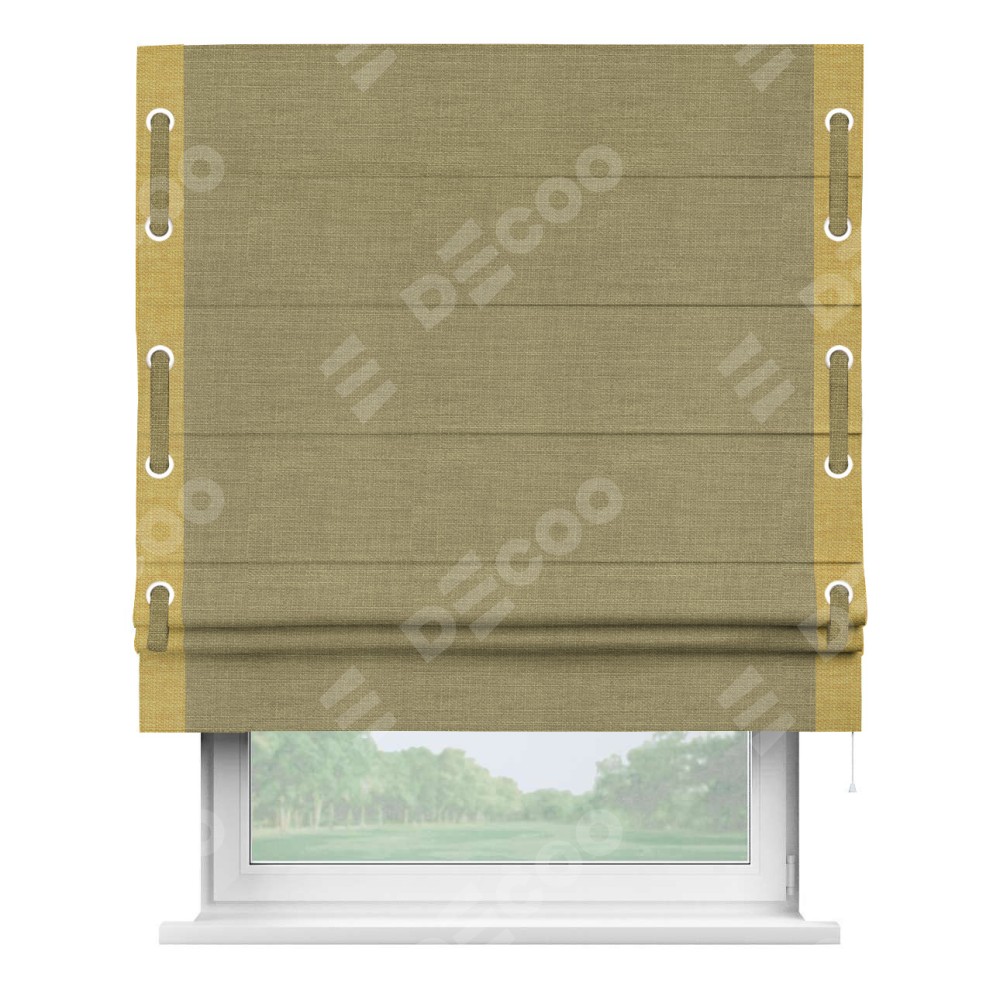 Римская штора «Кортин» с кантом (люверсы с пояском), для проема, лён коричневый
