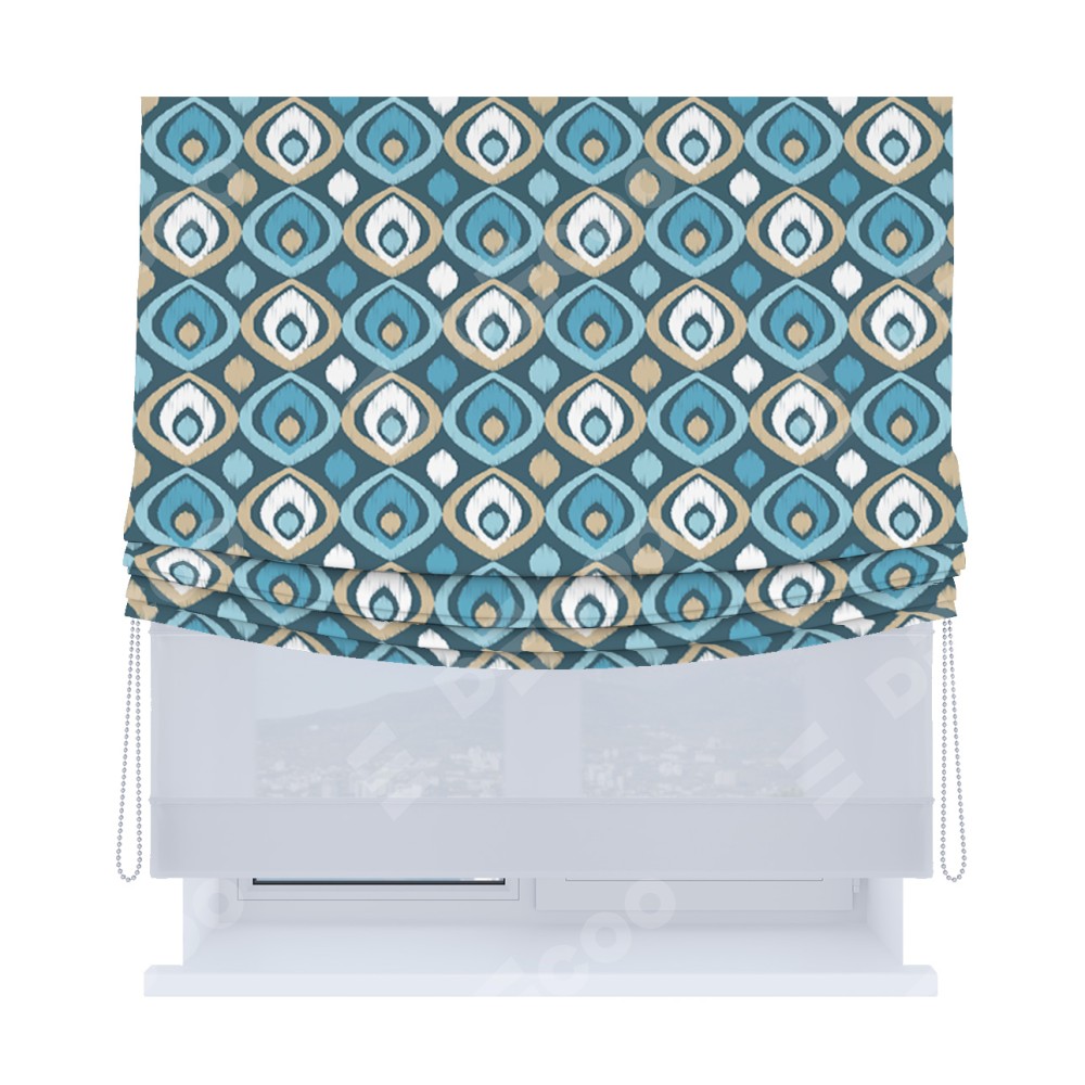 Римская штора «Кортин», день-ночь с мягкими складками, «Икат орнамент»