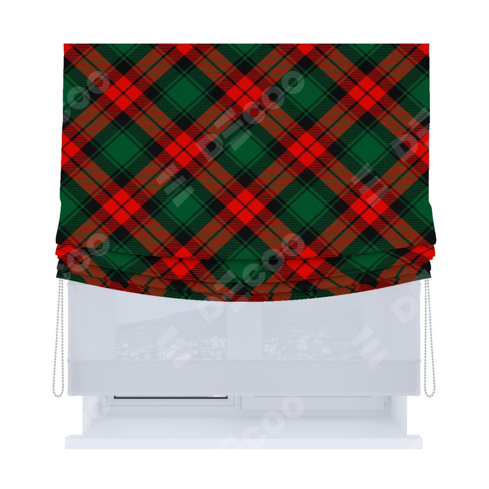 Римская штора «Кортин», день-ночь с мягкими складками, «Красно-зелёная клетка»