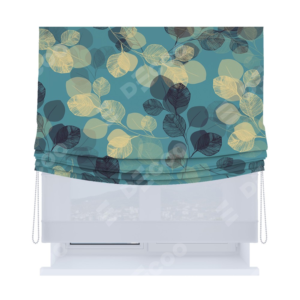 Римская штора «Кортин», день-ночь с мягкими складками, «Листья в небе»