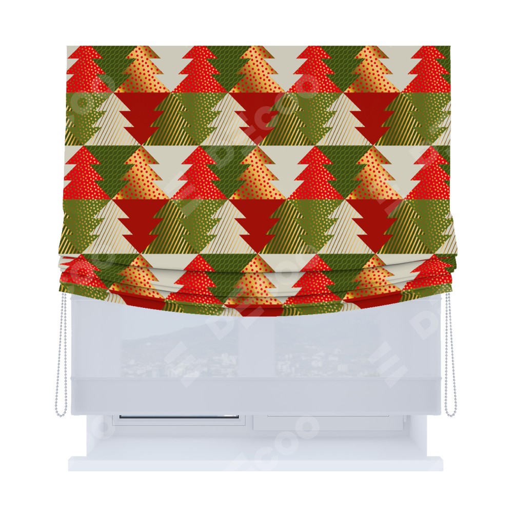 Римская штора «Кортин», день-ночь с мягкими складками, «Новогоднее украшение»