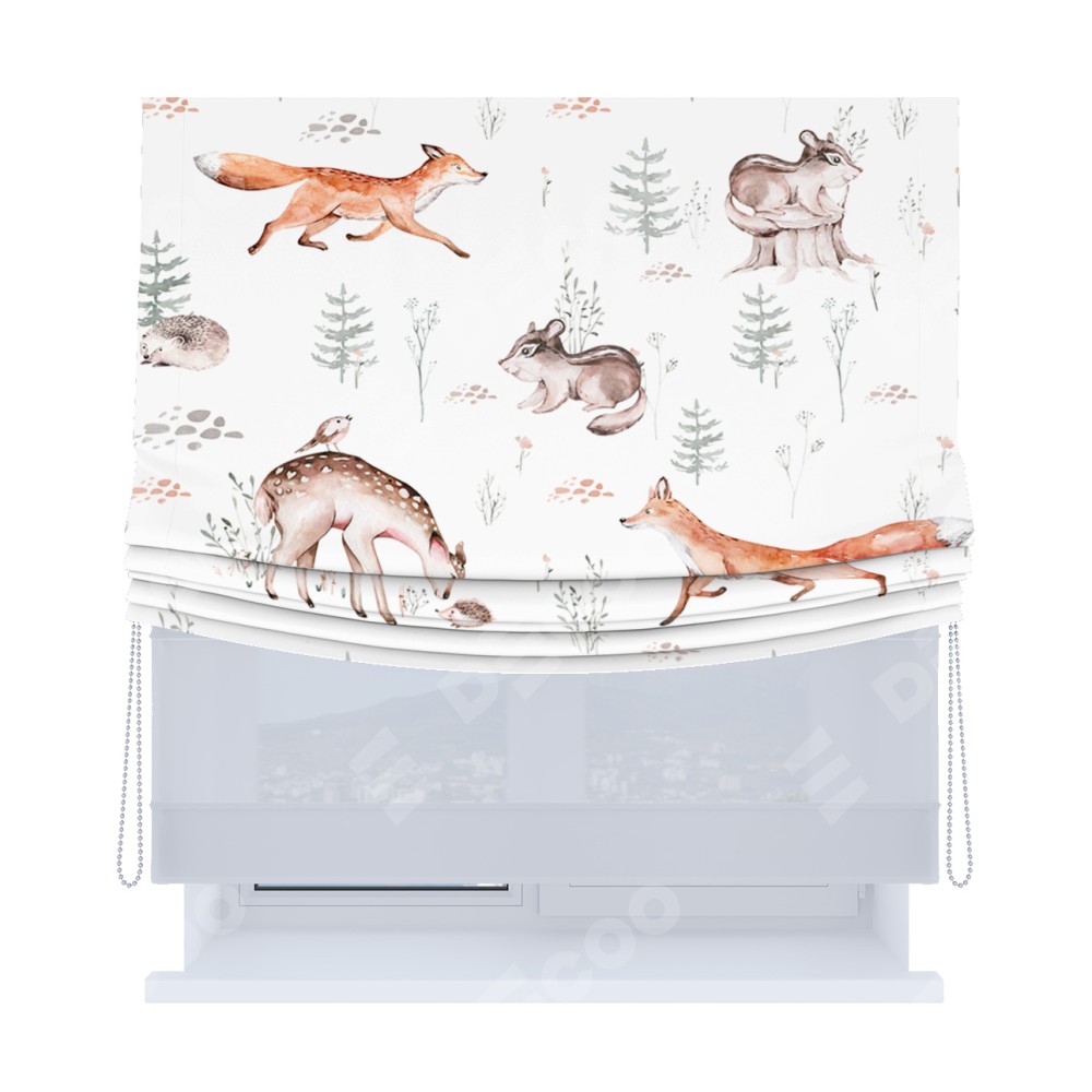 Римская штора «Кортин», день-ночь с мягкими складками, «Пушистый питомник»