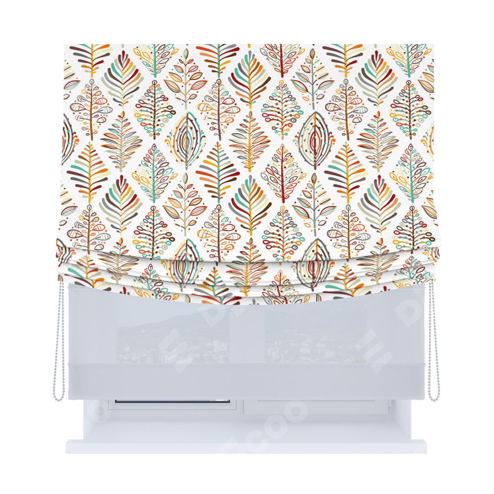 Римская штора «Кортин», день-ночь с мягкими складками, «Растительные ромбы»