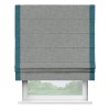 Римская штора производителя «Cortin», используется для проёма, пошита из ткани рогожка димаут тёмно-серый, артикул 80418. Отделка шторы кантом «Стрим Дуо», ткань для канта используется из рогожки димаут разной расцветки на выбор. Имеет универсальный механизм и подходит для монтажа: на потолок, на стену и в нишу.