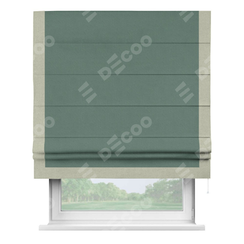 Римская штора «Кортин» с кантом Виктория, для проема, лён блэкаут бирюзовый