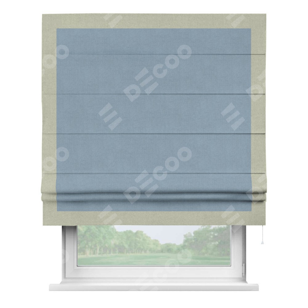 Римская штора «Кортин» с кантом Чесс, для проема, лён блэкаут голубой