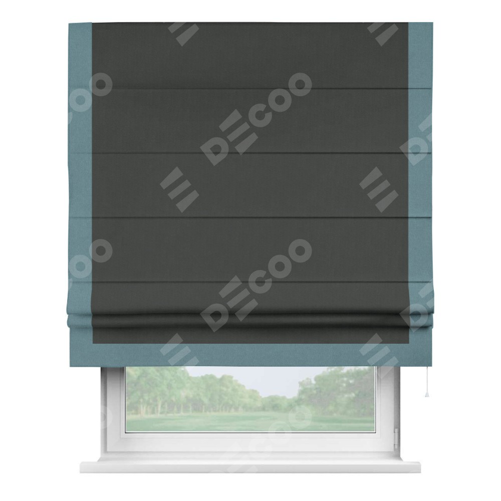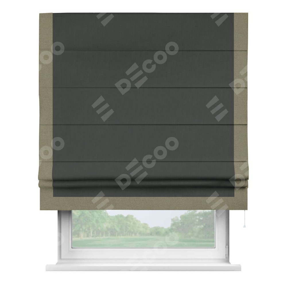 Римская штора «Кортин» с кантом Виктория, для проема, лён блэкаут графит