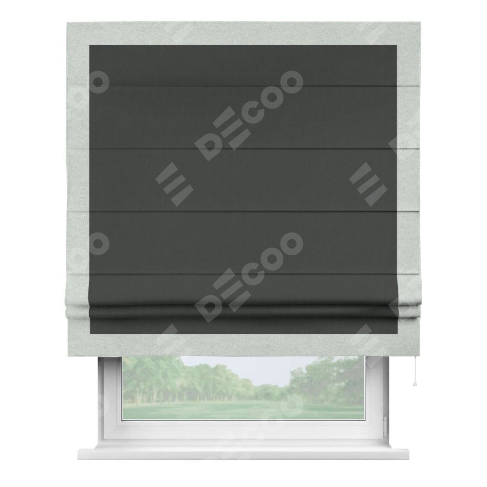 Римская штора производителя «Cortin», используется для проёма, пошита из ткани лён блэкаут графит, артикул 69448. Отделка шторы кантом «Чесс», ткань для канта используется из льна разной расцветки на выбор. Имеет универсальный механизм и подходит для монтажа: на потолок, на стену и в нишу.