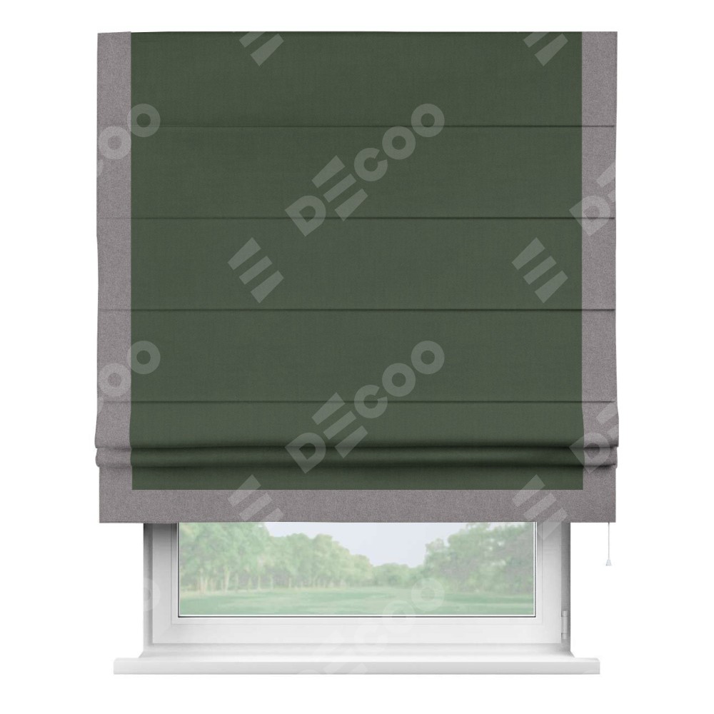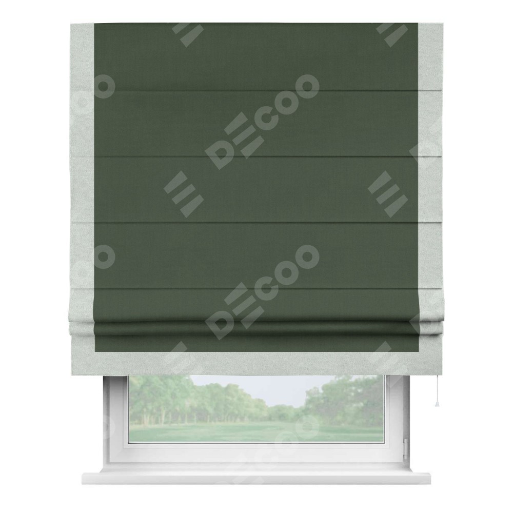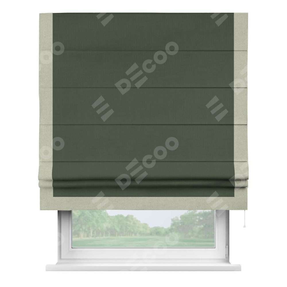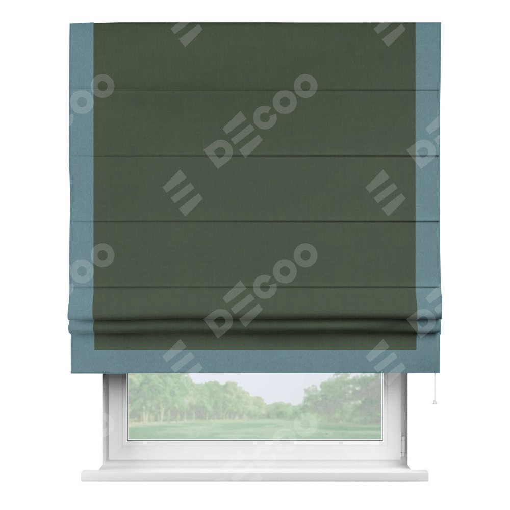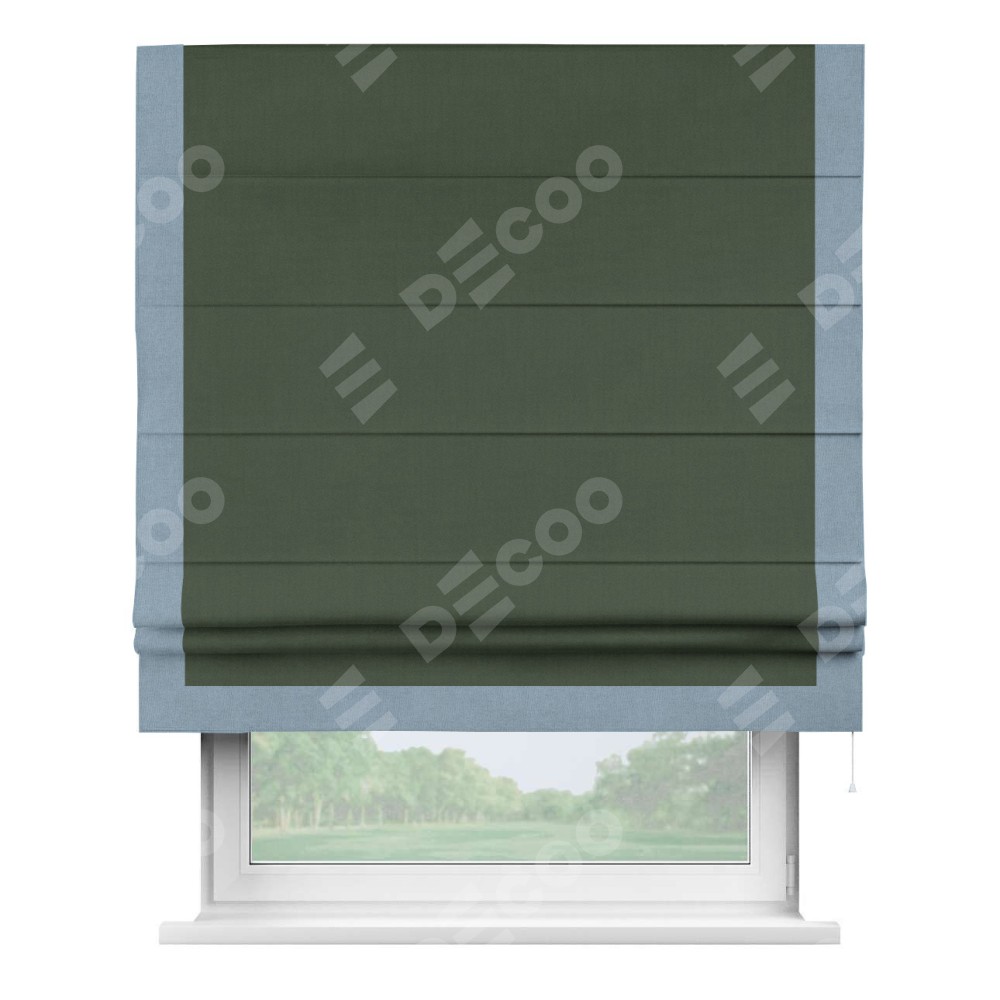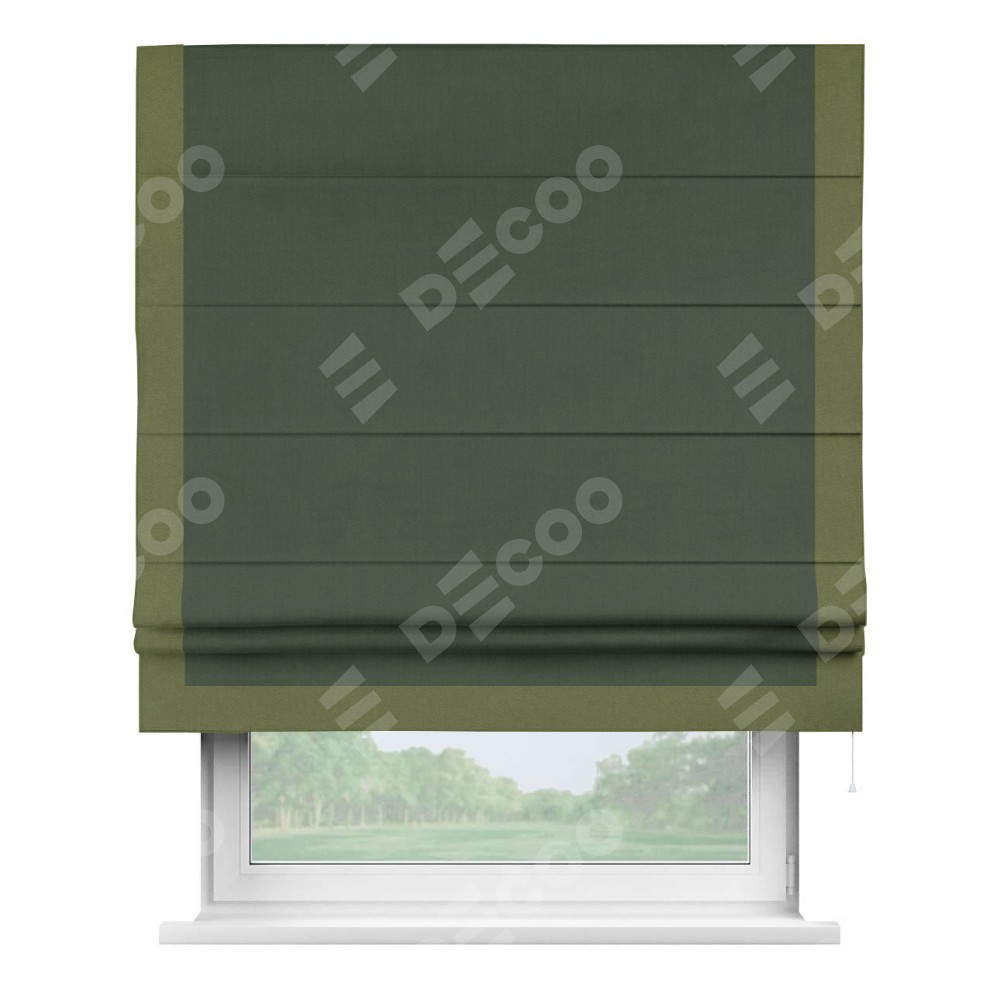 Римская штора «Кортин» с кантом Виктория, для проема, лён блэкаут зелёный
