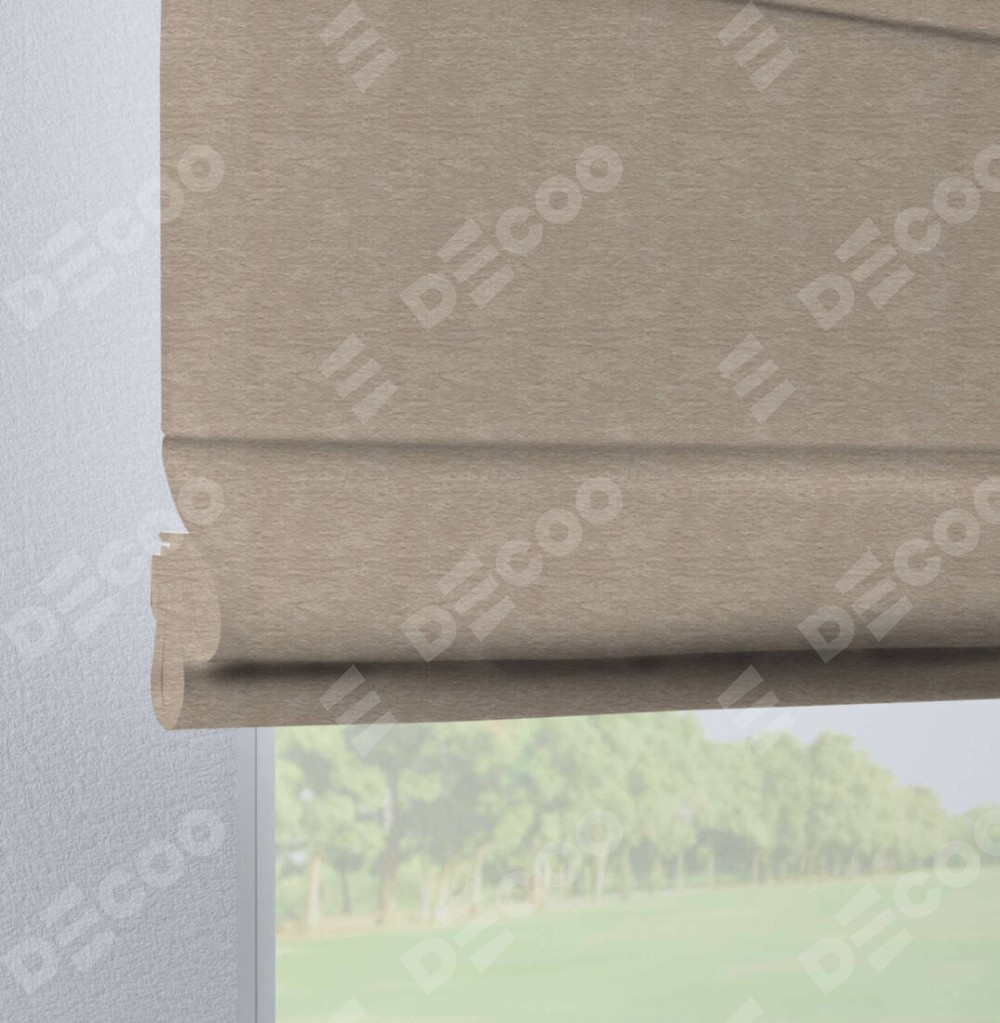 Римская штора производителя «Cortin», используется для проёма, пошита из ткани софт однотонный тёмно-бежевый, артикул ткани 1640. Данная модель пошита на петлях, комплектуется на выбор круглым карнизом и подходит для монтажа на стену. Римская штора на петлях имеет простую систему регулировки высоты, отличительным преимуществом данной модели является простой способ монтажа. Достаточно повесить ее на трубу и штора готова!