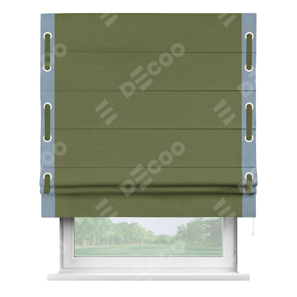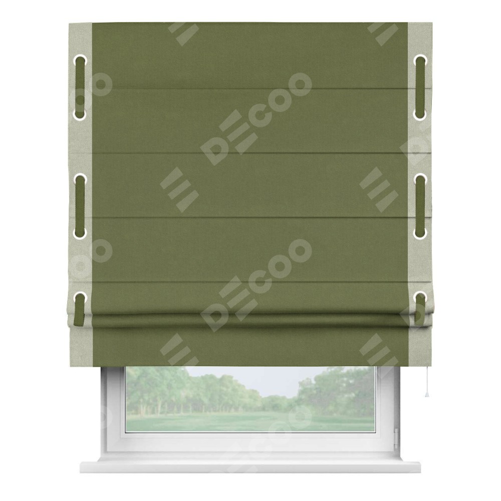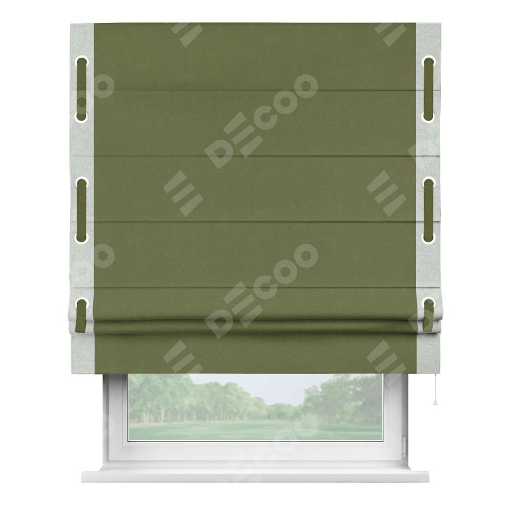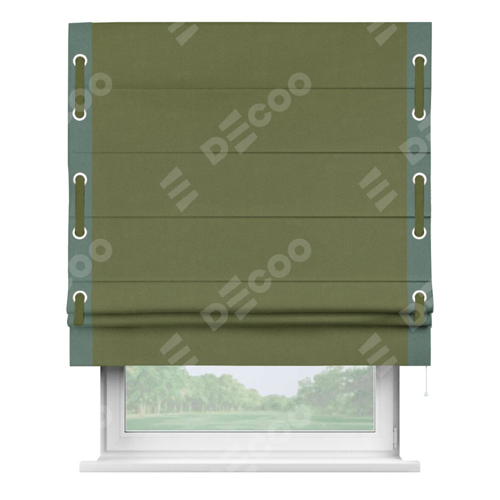 Римская штора «Кортин» с кантом Стрим Дуо (люверсы с пояском), для проема, лён блэкаут оливковый