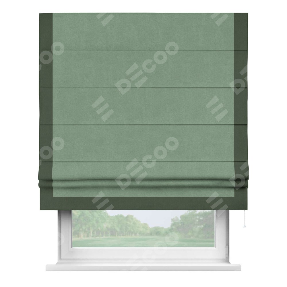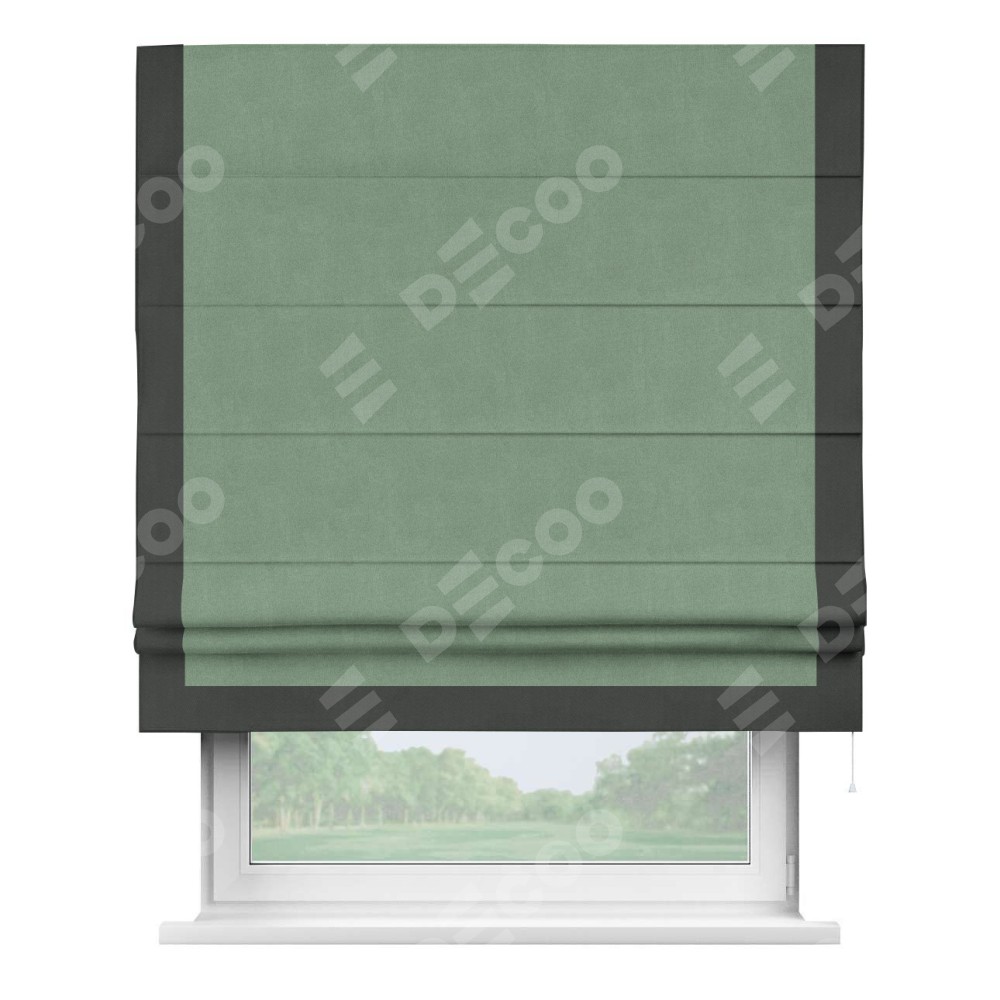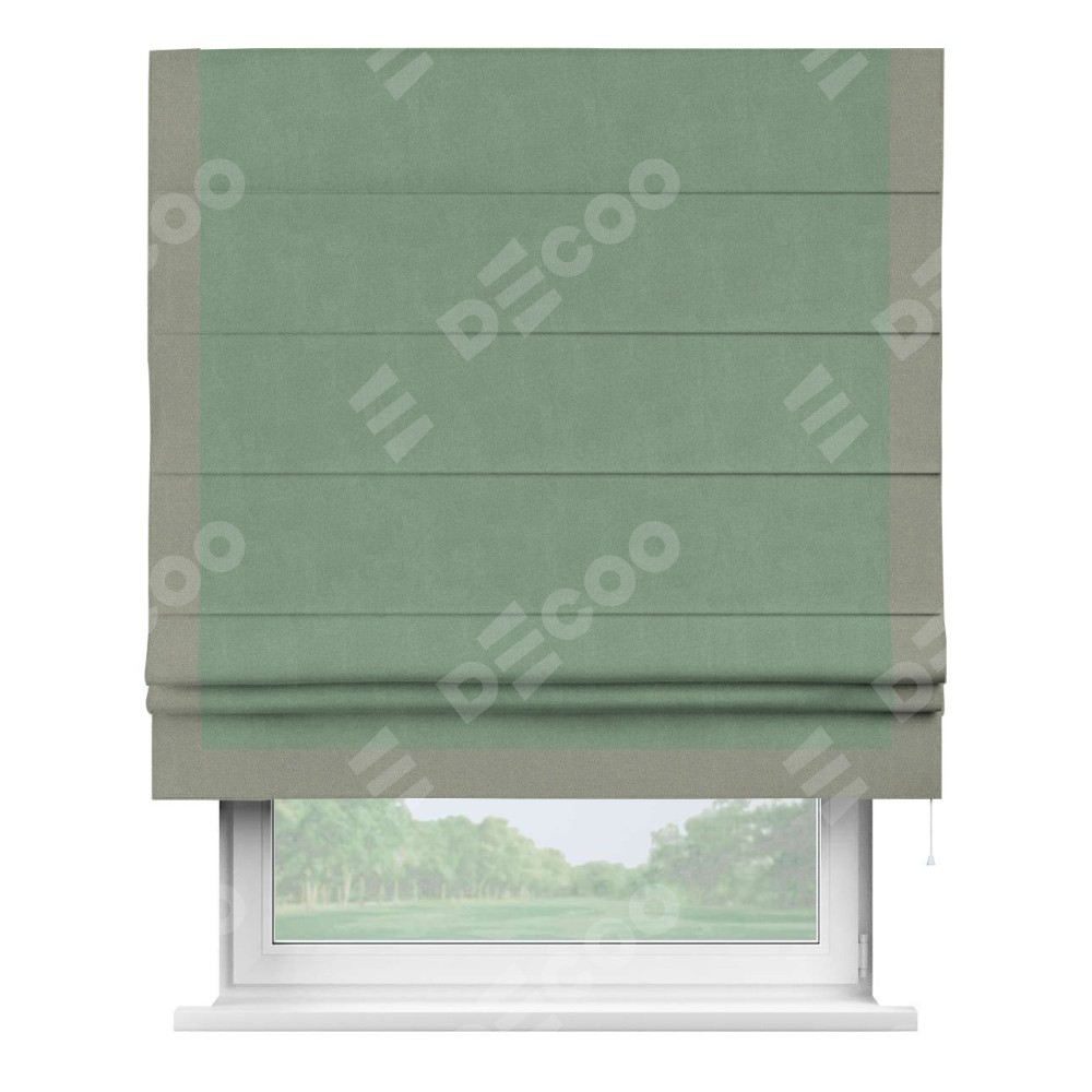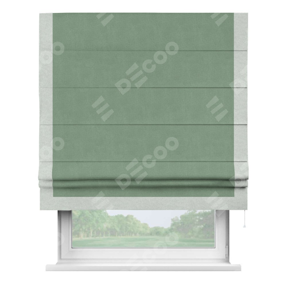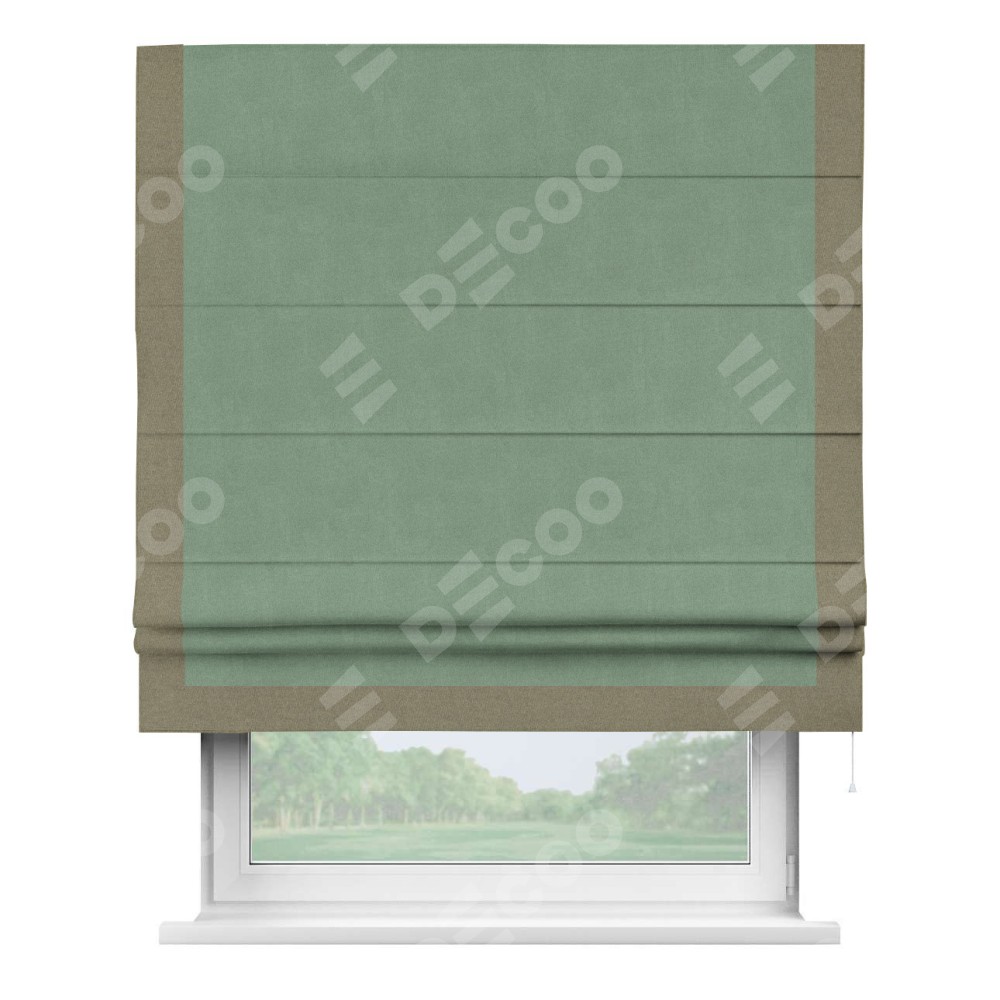Римская штора «Кортин» с кантом Виктория, для проема, лён блэкаут светло-бирюзовый