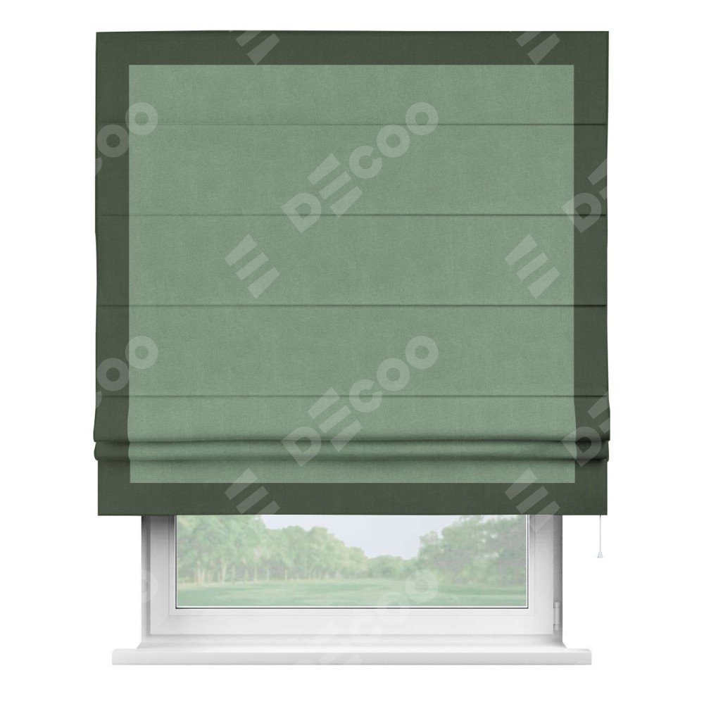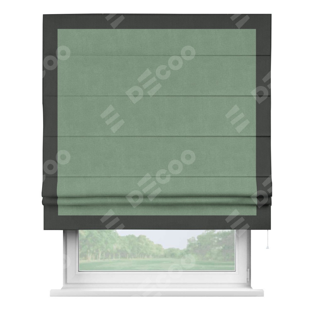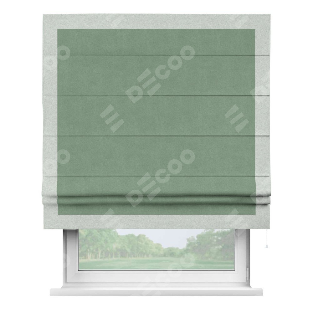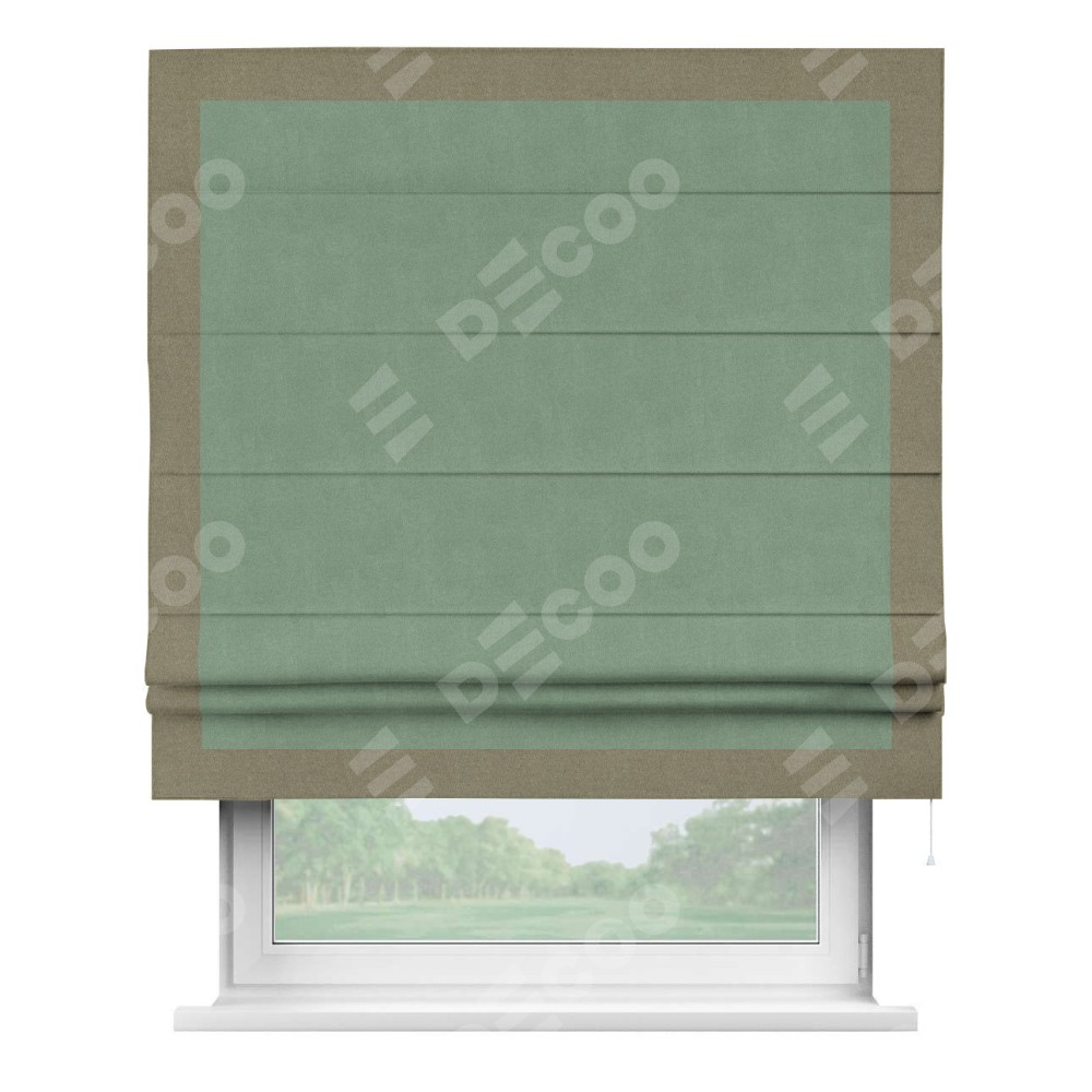 Римская штора «Кортин» с кантом Чесс, для проема, лён блэкаут светло-бирюзовый