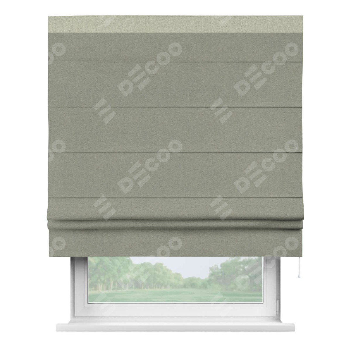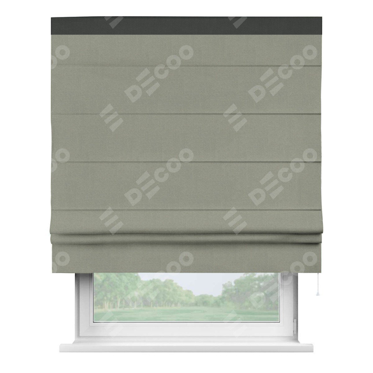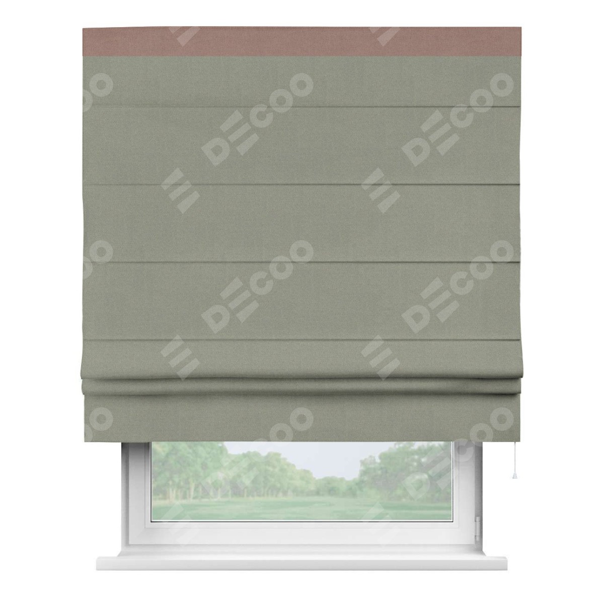 Римская штора производителя «Cortin», используется для проёма, пошита из ткани лён блэкаут светло-серый, артикул 69446. Отделка шторы кантом «Кинг», ткань для канта используется из льна разной расцветки на выбор. Имеет универсальный механизм и подходит для монтажа: на потолок, на стену и в нишу.