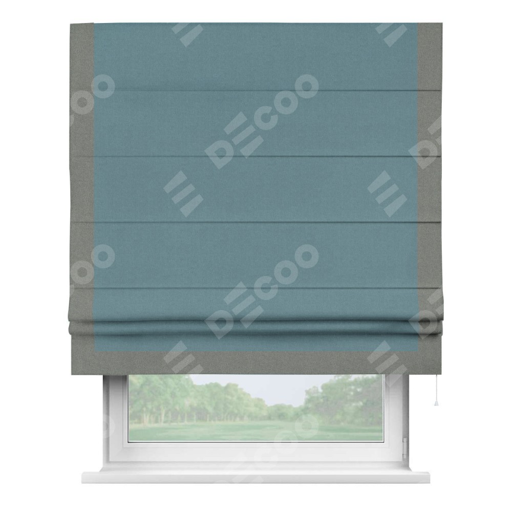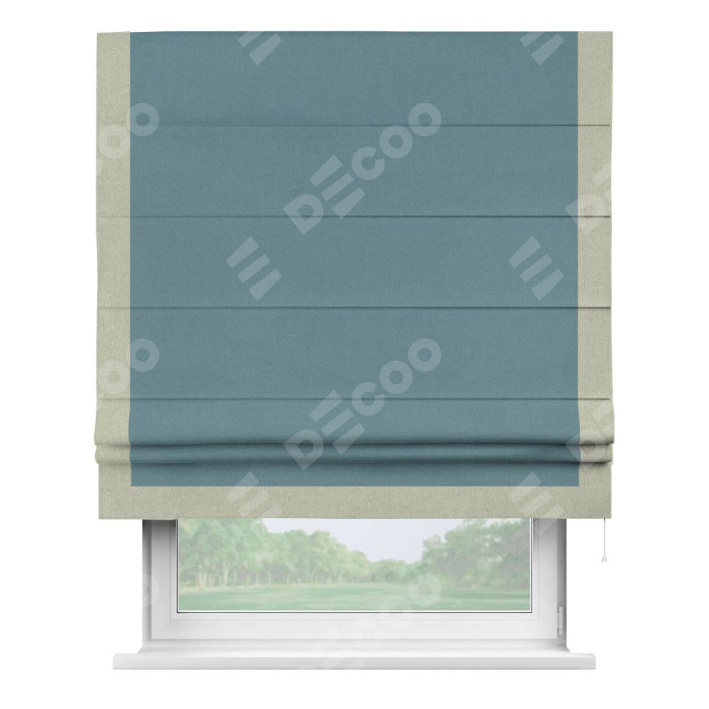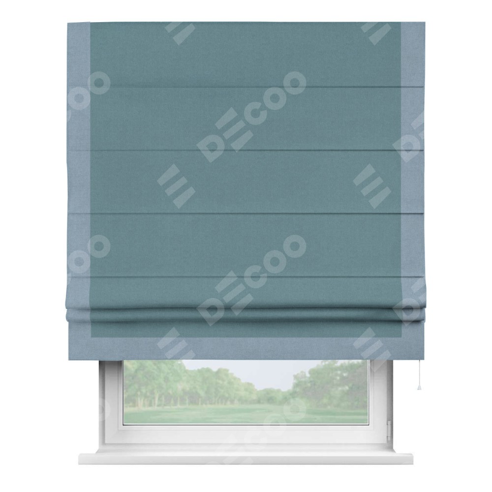 Римская штора «Кортин» с кантом Виктория, для проема, лён блэкаут синий