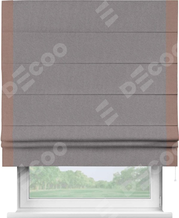 Римская штора «Кортин» с кантом Стрим Дуо, для проема, лён блэкаут сиреневый