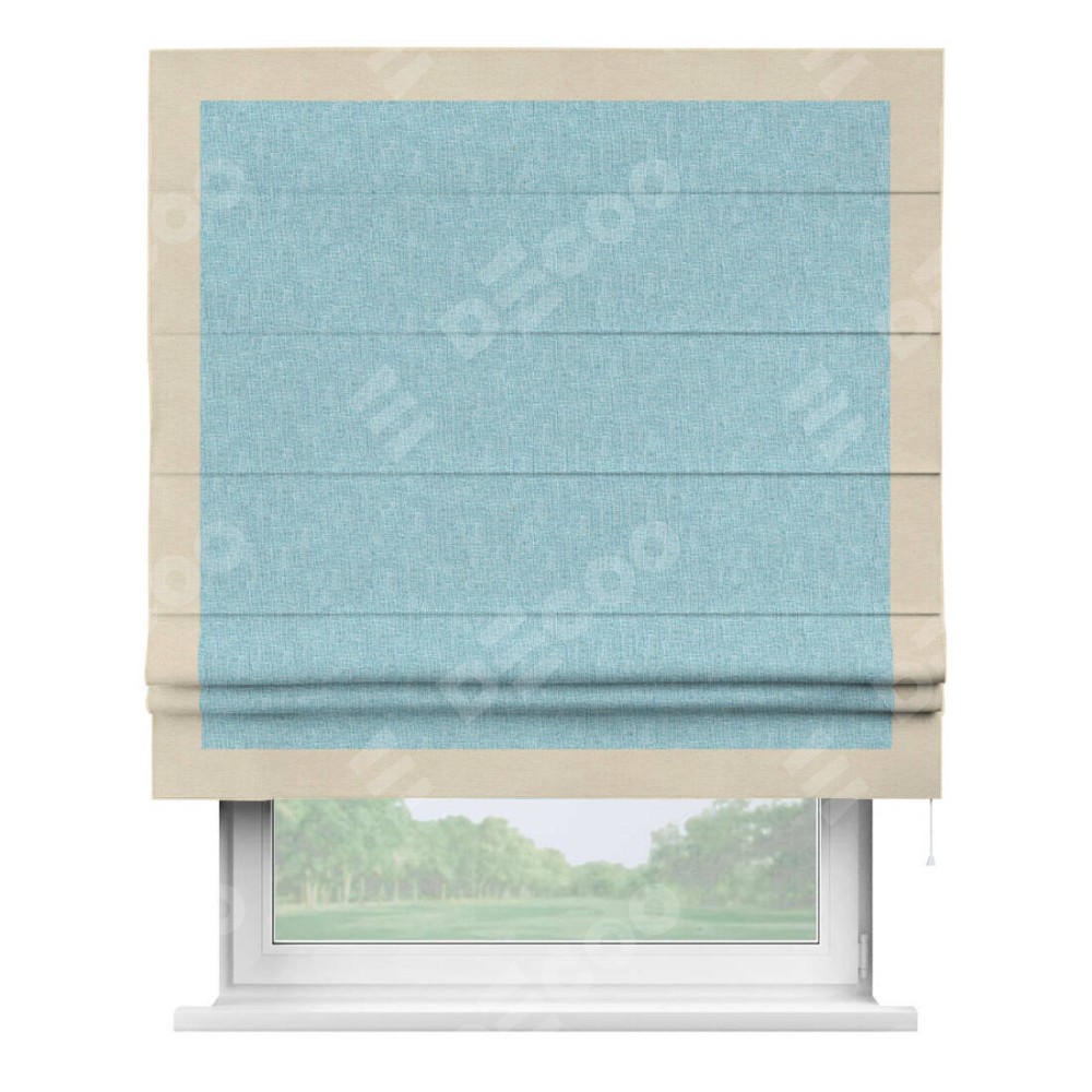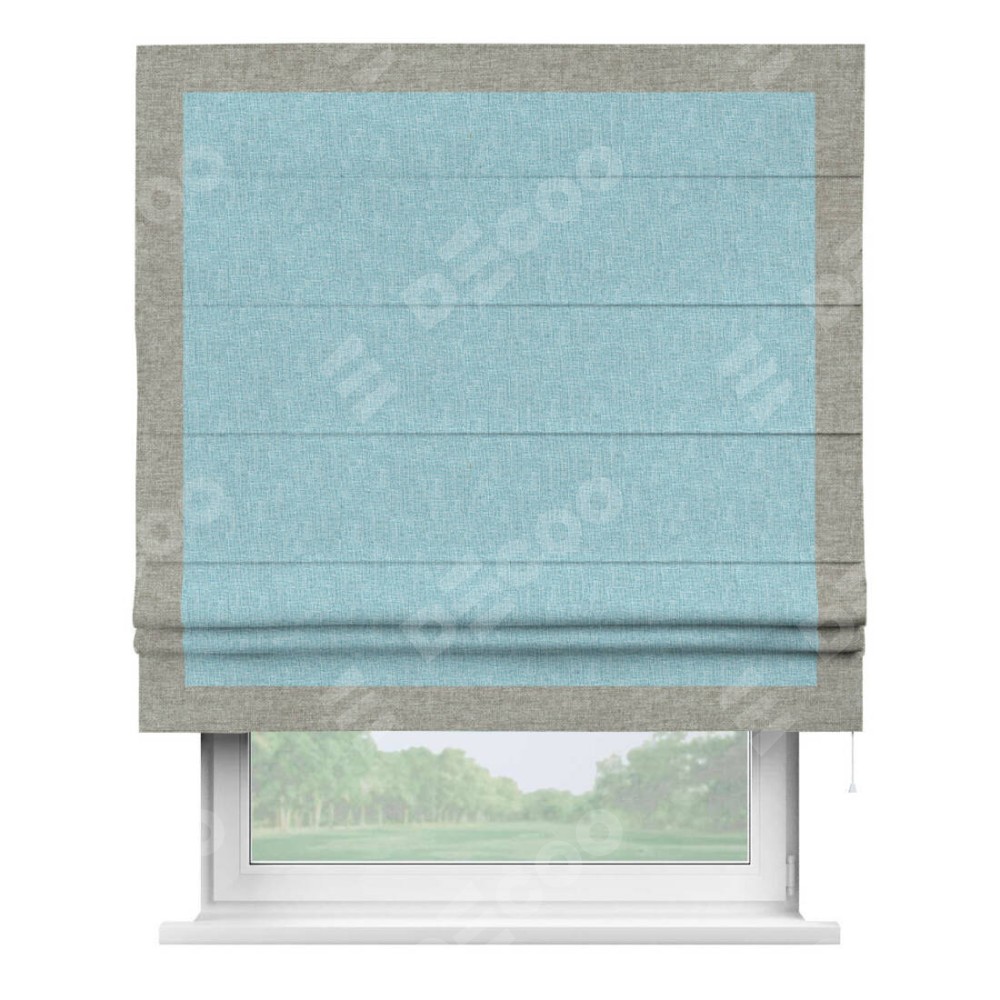 Римская штора «Кортин» с кантом Чесс, для проема, ткань лён кашемир голубой