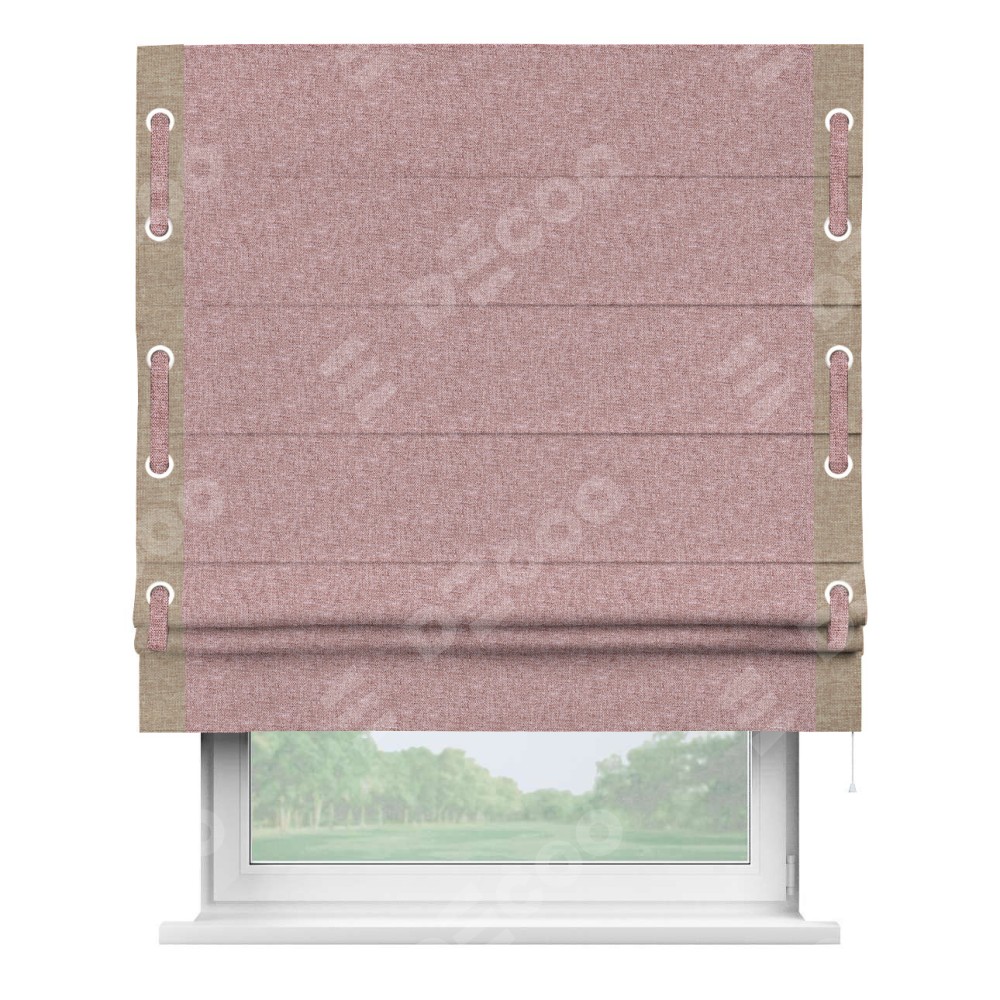 Римская штора «Кортин» с кантом Стрим Дуо (люверсы с пояском), для проема, ткань лён кашемир розовая пудра