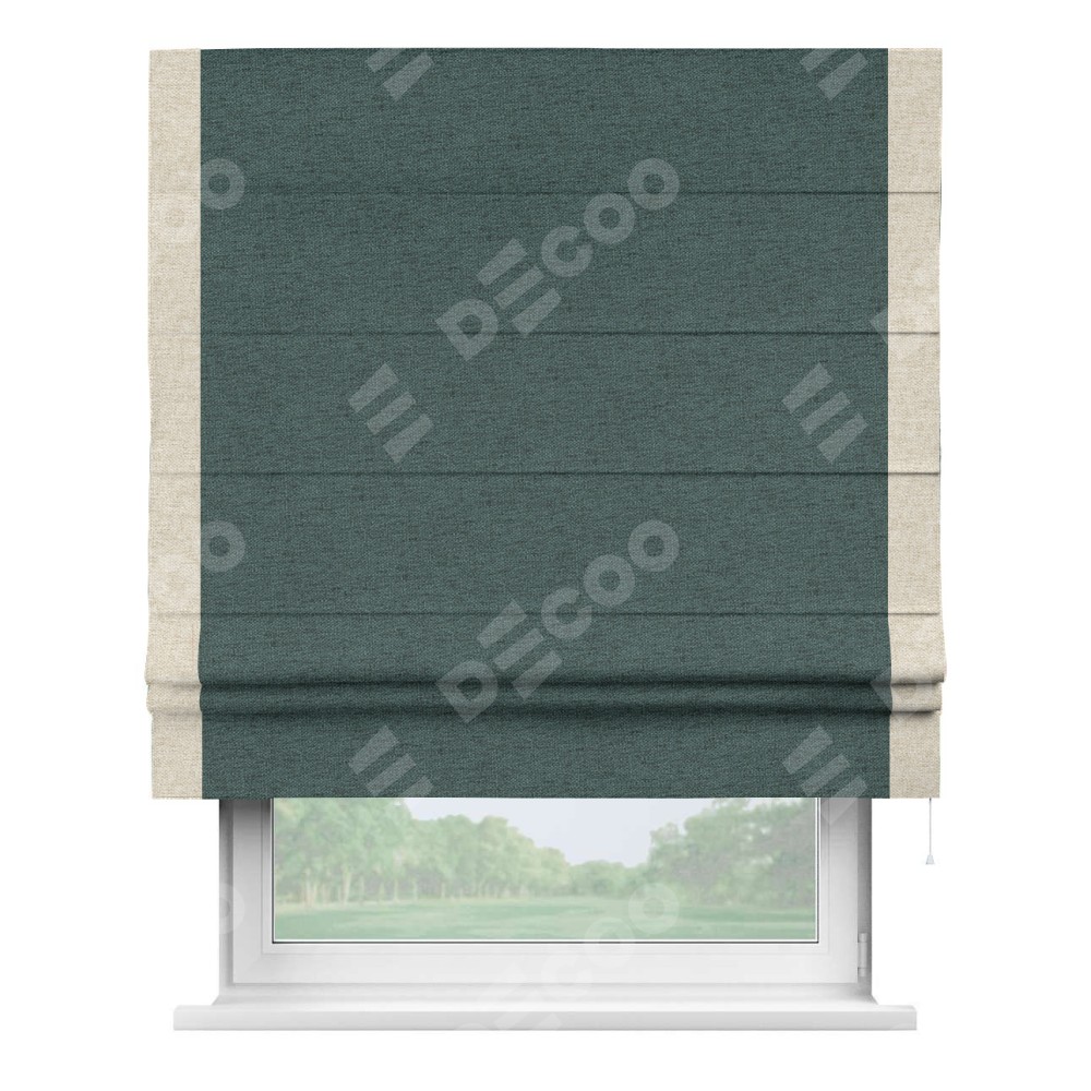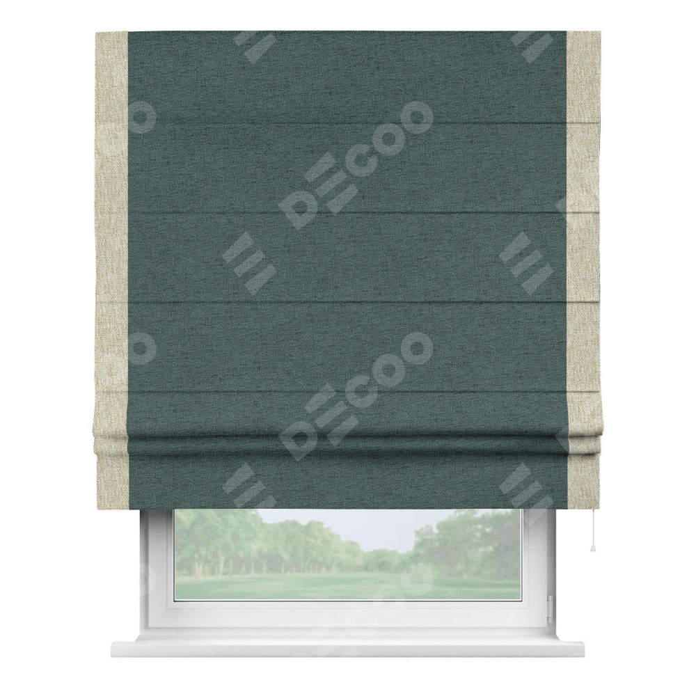 Римская штора «Кортин» с кантом Стрим Дуо, для проема, ткань стиф димаут сине-зелёный