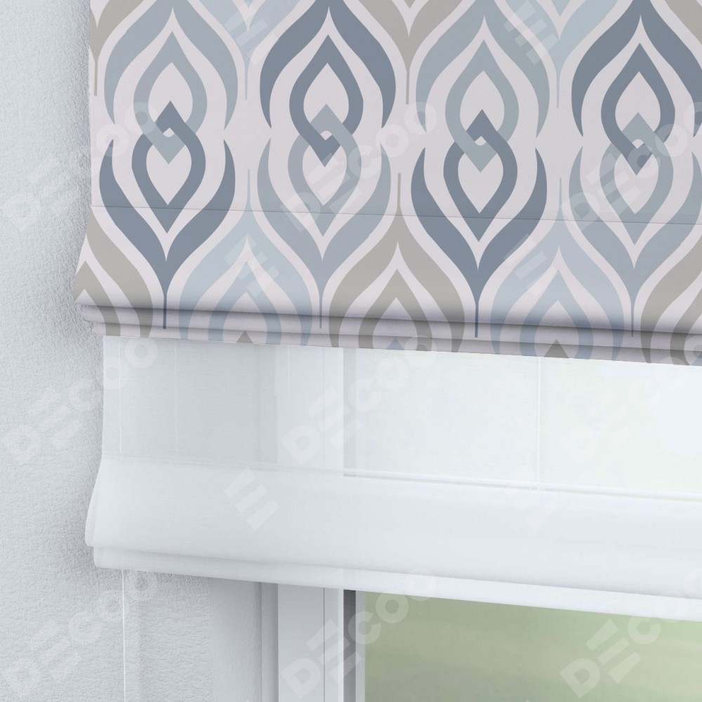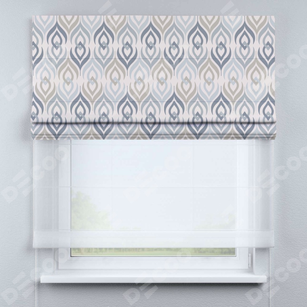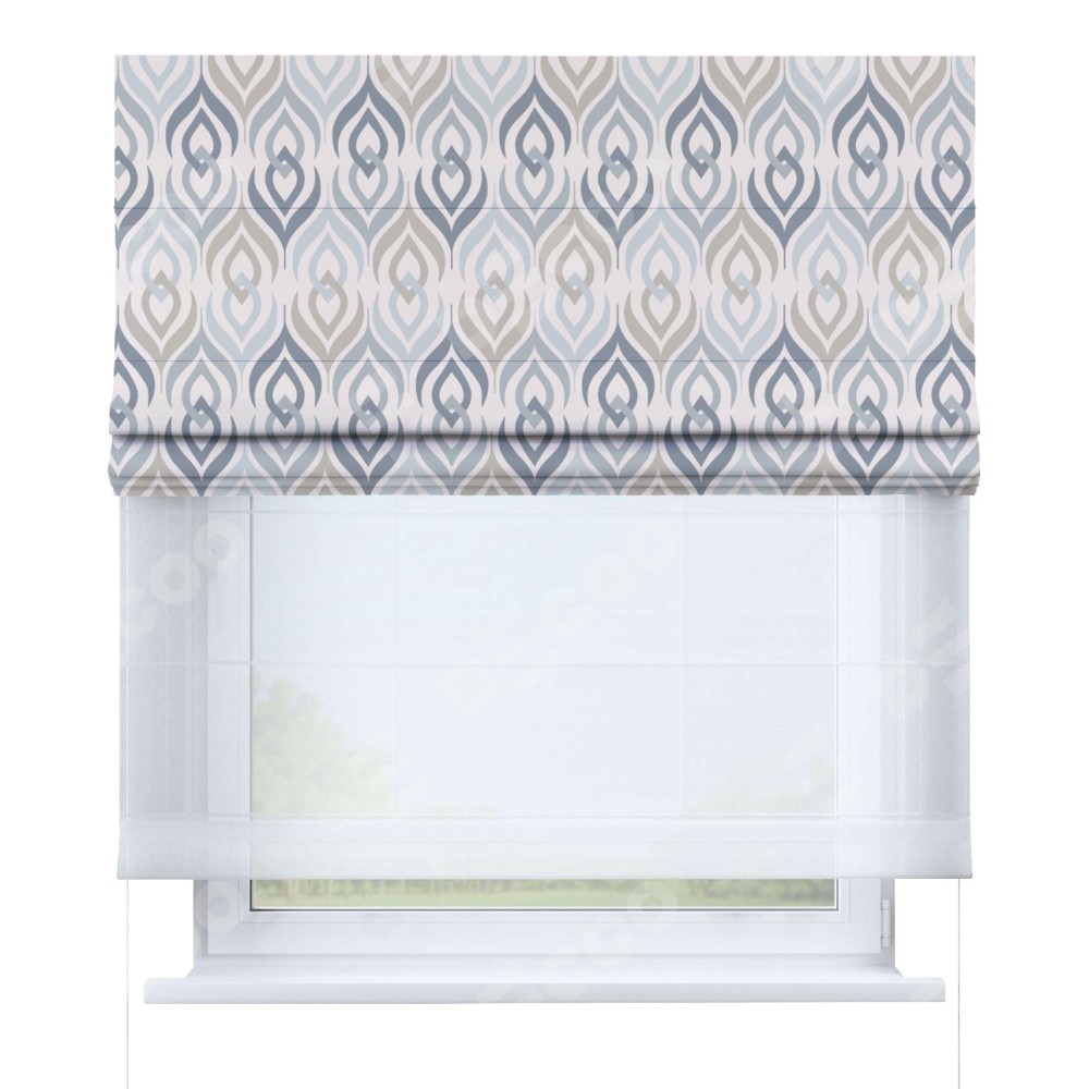 Римская штора день-ночь производителя «Cortin», используется для проёма, пошита из двух полотен, с лицевой блэкаут с нанесением сублимационной печати «Элизиум», вторая ткань тюль (по стандарту комплектуется тюль белого цвета артикул V-01). Имеет универсальный механизм и подходит для монтажа: на потолок, на стену и в нишу.