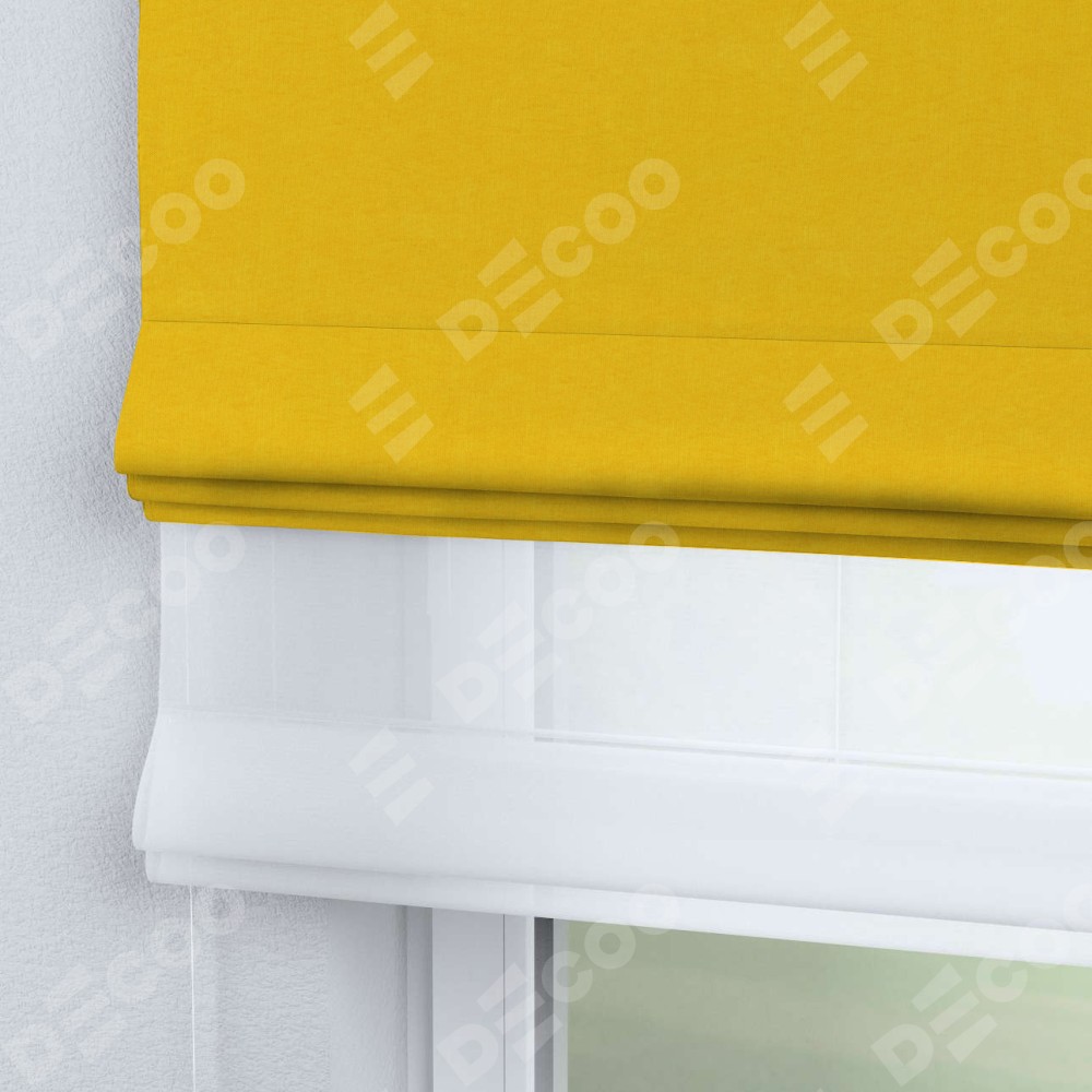 Римская штора день-ночь производителя «Cortin», используется для проёма, пошита из двух полотен, с лицевой стороны канвас желтый артикул v-344, вторая ткань тюль (по стандарту комплектуется тюль белого цвета артикул V-01). Имеет универсальный механизм и подходит для монтажа: на потолок, на стену и в нишу.
