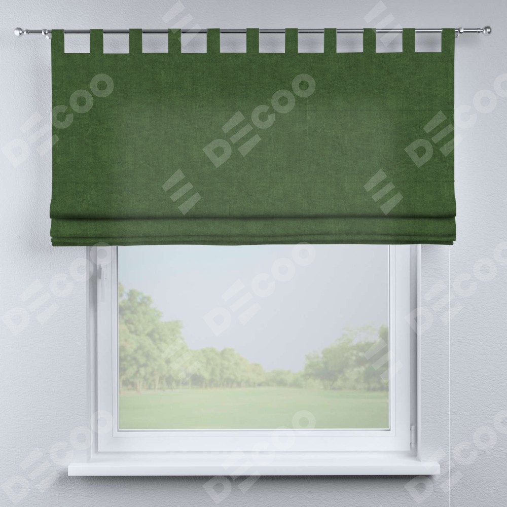 Римская штора производителя «Cortin», используется для проёма, пошита из ткани канвас зелёный, артикул ткани v-16. Данная модель пошита на петлях, комплектуется на выбор круглым карнизом и подходит для монтажа на стену. Римская штора на петлях имеет простую систему регулировки высоты, отличительным преимуществом данной модели является простой способ монтажа. Достаточно повесить ее на трубу и штора готова!