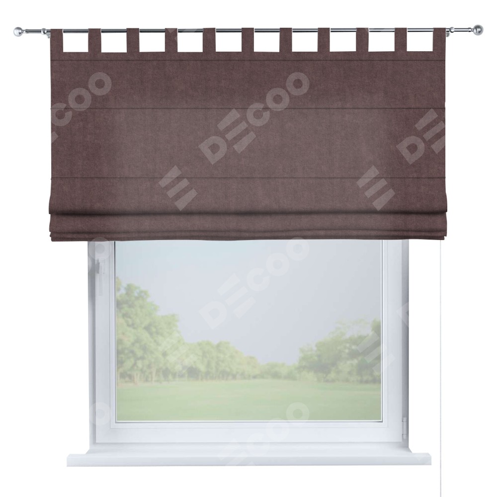 Римская штора производителя «Cortin», используется для проёма, пошита из ткани канвас махагон, артикул ткани v-37. Данная модель пошита на петлях, комплектуется на выбор круглым карнизом и подходит для монтажа на стену. Римская штора на петлях имеет простую систему регулировки высоты, отличительным преимуществом данной модели является простой способ монтажа. Достаточно повесить ее на трубу и штора готова!