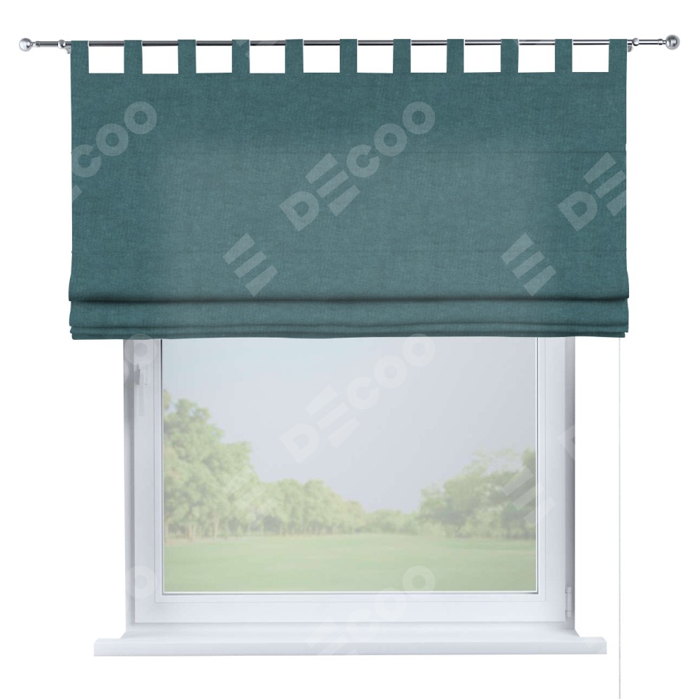 Римская штора производителя «Cortin», используется для проёма, пошита из ткани канвас ментоловый, артикул ткани v-114. Данная модель пошита на петлях, комплектуется на выбор круглым карнизом и подходит для монтажа на стену. Римская штора на петлях имеет простую систему регулировки высоты, отличительным преимуществом данной модели является простой способ монтажа. Достаточно повесить ее на трубу и штора готова!