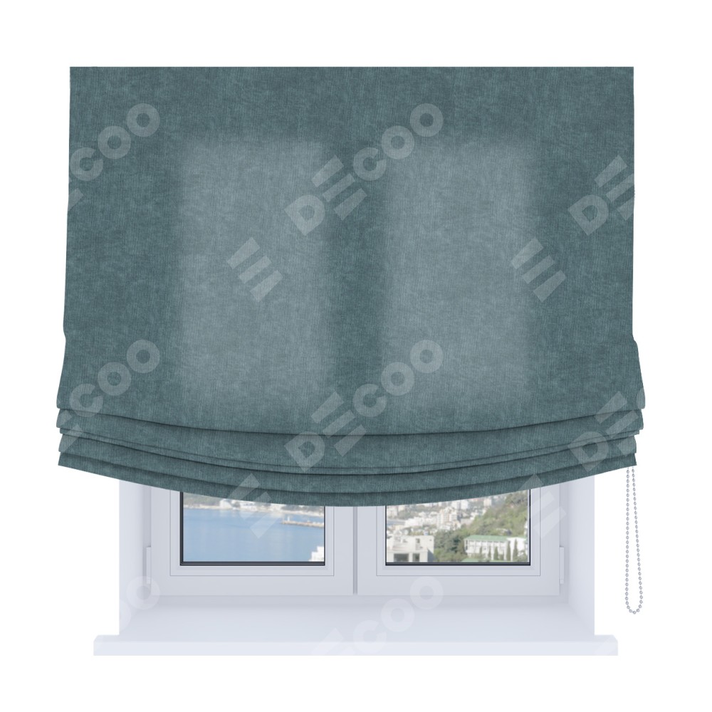 Римская штора «Кортин», канвас серо-голубой, Soft с мягкими складками