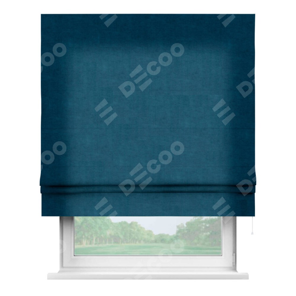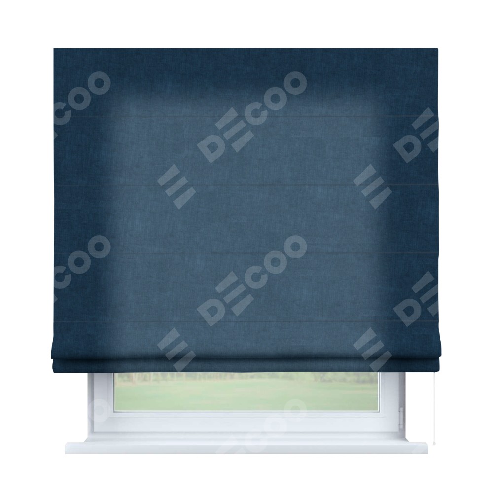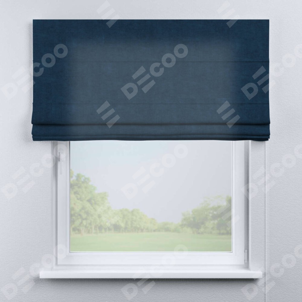 Римская штора производителя «Cortin», используется для проёма, пошита из ткани канвас синий, артикул ткани v-573. Имеет универсальный механизм и подходит для монтажа: на потолок, на стену и в нишу.