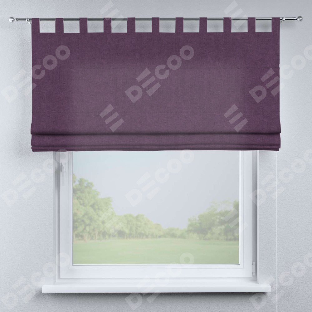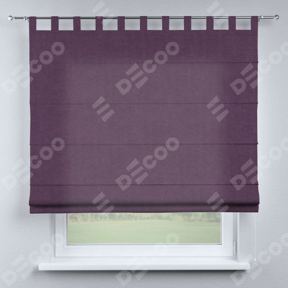 Римская штора производителя «Cortin», используется для проёма, пошита из ткани канвас сиреневый, артикул ткани v-98. Данная модель пошита на петлях, комплектуется на выбор круглым карнизом и подходит для монтажа на стену. Римская штора на петлях имеет простую систему регулировки высоты, отличительным преимуществом данной модели является простой способ монтажа. Достаточно повесить ее на трубу и штора готова!