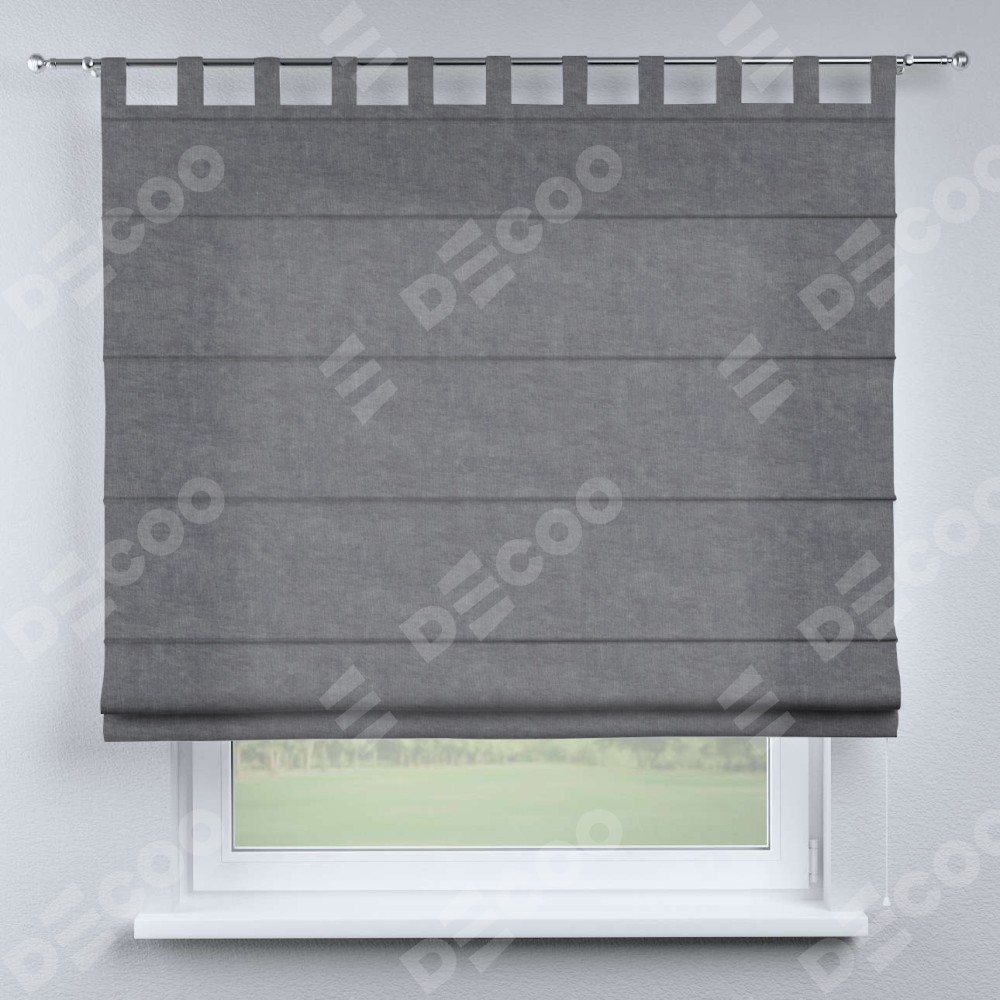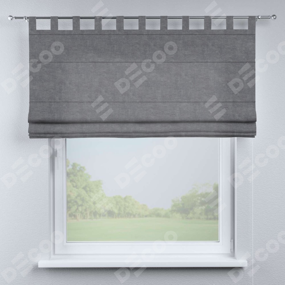 Римская штора производителя «Cortin», используется для проёма, пошита из ткани канвас стальной, артикул ткани v-1082. Данная модель пошита на петлях, комплектуется на выбор круглым карнизом и подходит для монтажа на стену. Римская штора на петлях имеет простую систему регулировки высоты, отличительным преимуществом данной модели является простой способ монтажа. Достаточно повесить ее на трубу и штора готова!