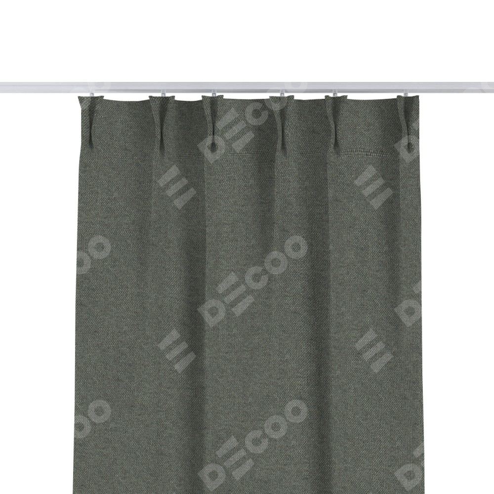 Комплект прямых штор, от производителя «Cortin», пошиты из ткани лён димаут тёмно-серый, артикул ткани 91011. С изнаночной стороны в верхней части штор пристрачивается шторная лента с декоративными складками «Кустик». Для создания элегантных складок прямые шторы шьются по стандарту с коэффициентом 1:2 (на 100 см. ширины проёма 200 см. ширины ткани).
