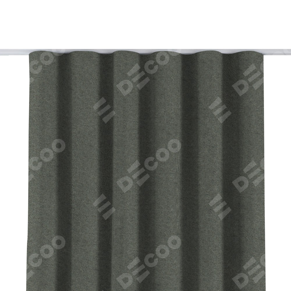 Комплект прямых штор, от производителя «Cortin», пошиты из ткани лён димаут тёмно-серый, артикул ткани 91011. С изнаночной стороны в верхней части штор пристрачивается шторная лента с декоративными складками «Волна». Для создания элегантных складок прямые шторы шьются по стандарту с коэффициентом 1:2 (на 100 см. ширины проёма 200 см. ширины ткани).
