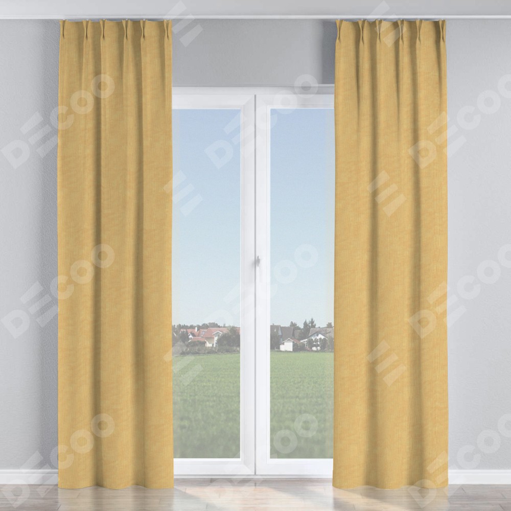 Комплект прямых штор, от производителя «Cortin», пошиты из ткани канвас абрикосовый, артикул ткани v-448. С изнаночной стороны в верхней части штор пристрачивается шторная лента с декоративными складками «Кустик». Для создания элегантных складок прямые шторы шьются по стандарту с коэффициентом 1:2 (на 100 см. ширины проёма 200 см. ширины ткани).